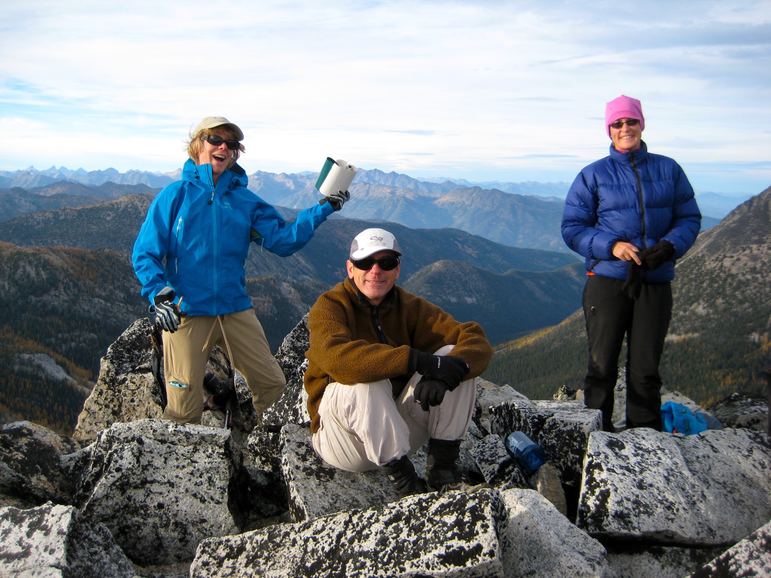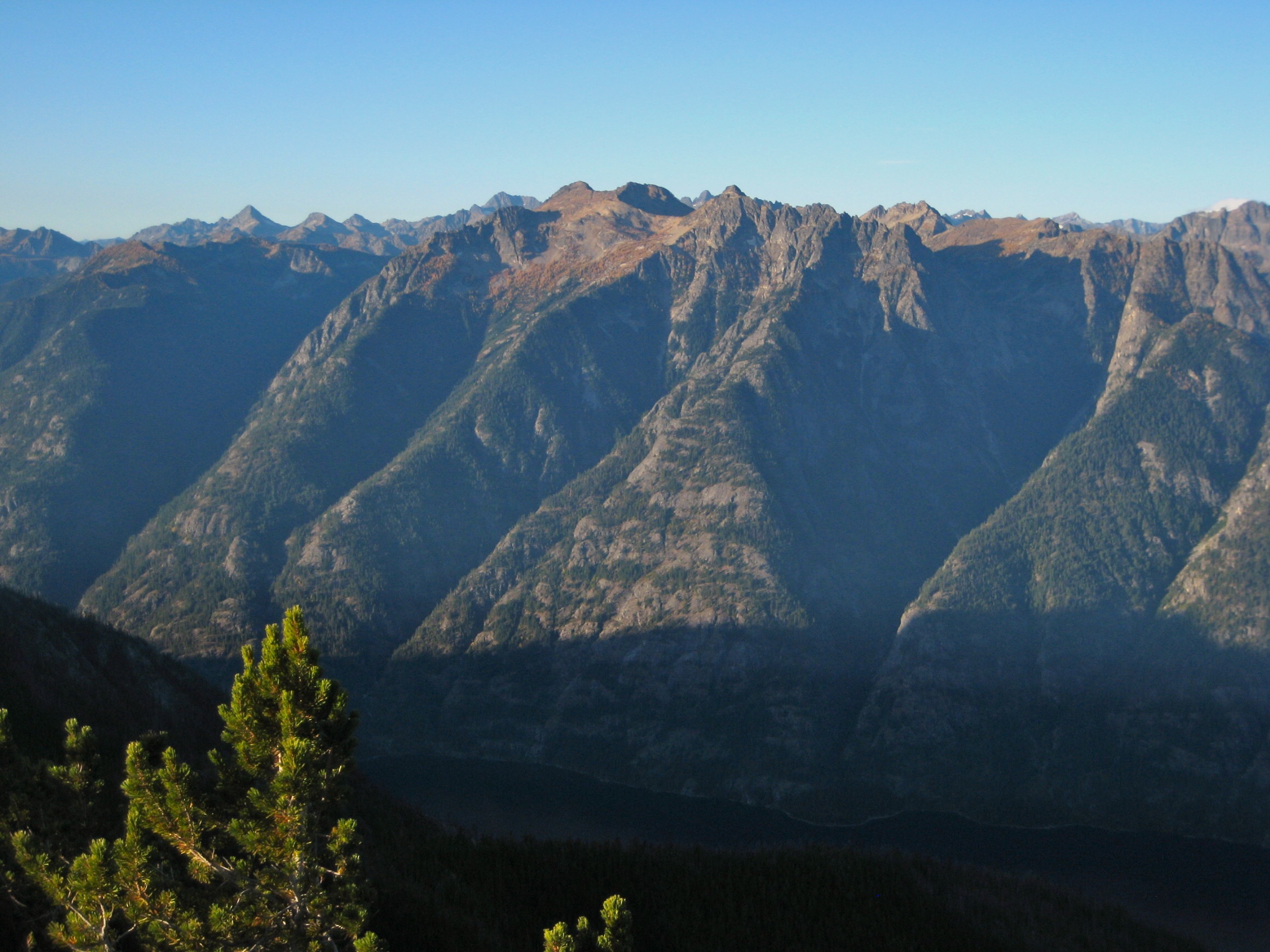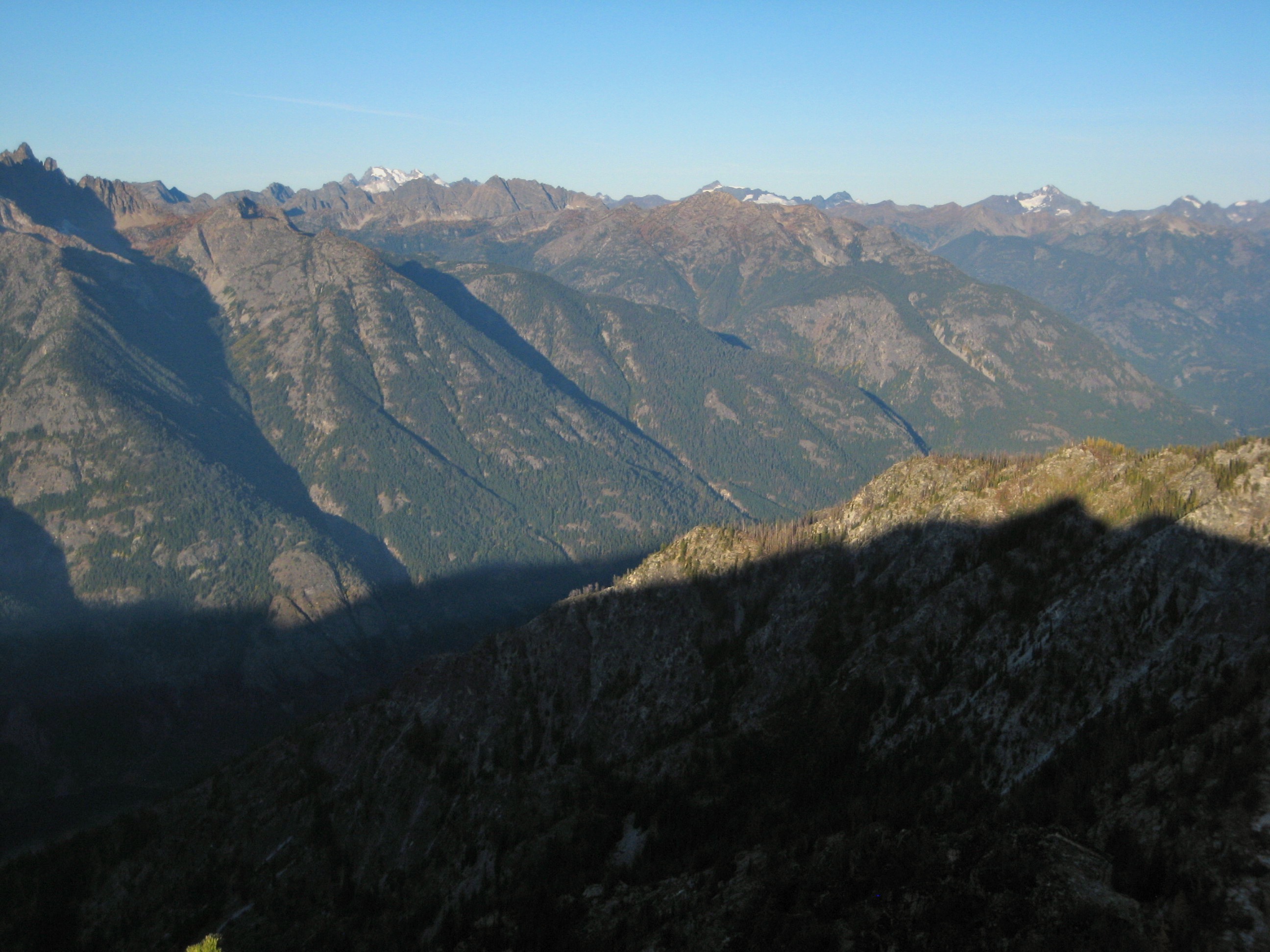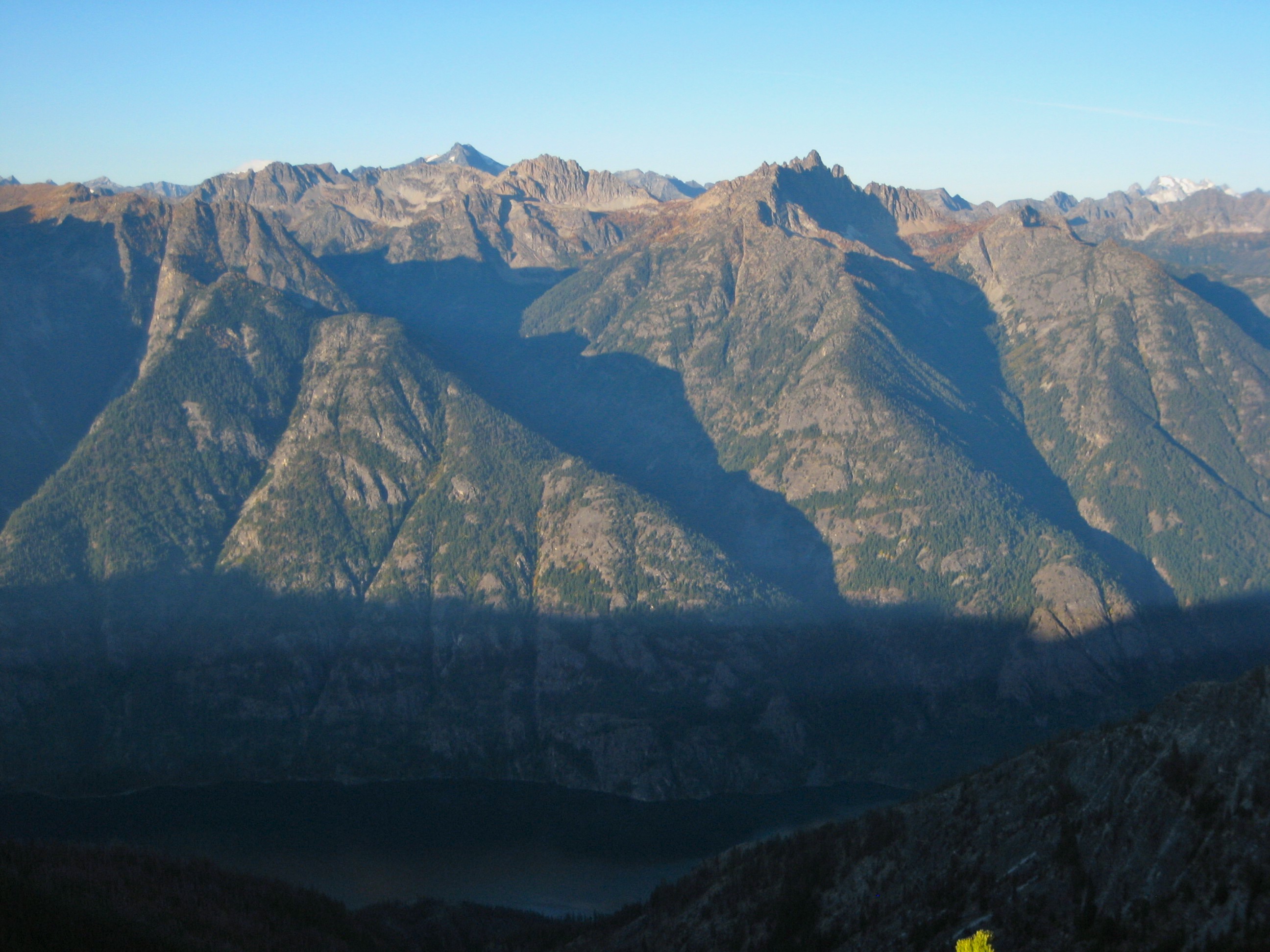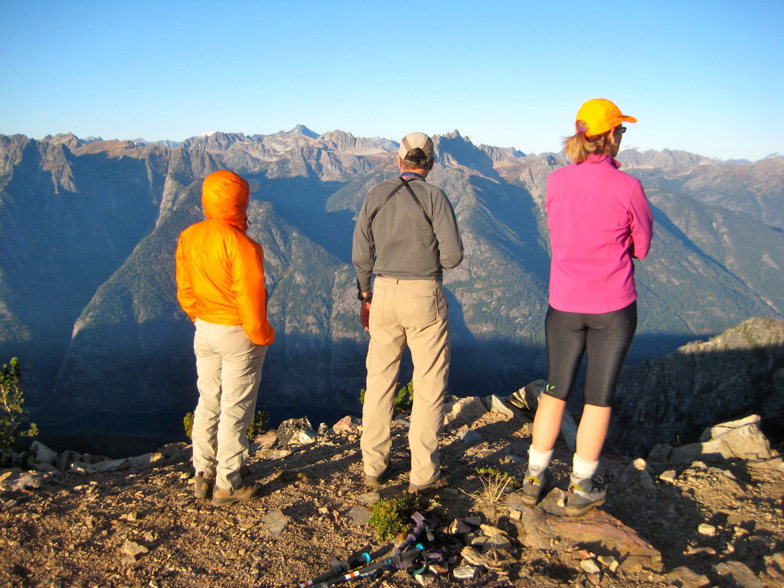 The morning was clear and mild, prompting all of us to hike up Boulder Butte for one last rooftop view. From this former lookout site, a line of 8000-foot peaks rises straight up from the western shore of 1100-foot Lake Chelan. Morning sun brought out exquisite textures and colors in the hillsides. The only downer was knowing that we needed to plunge over 6000 feet in order to catch our boat back home.
