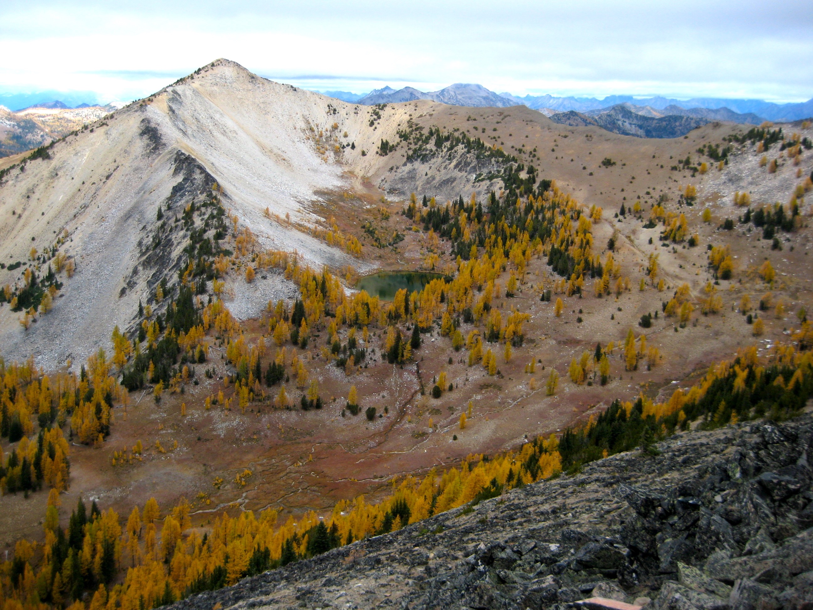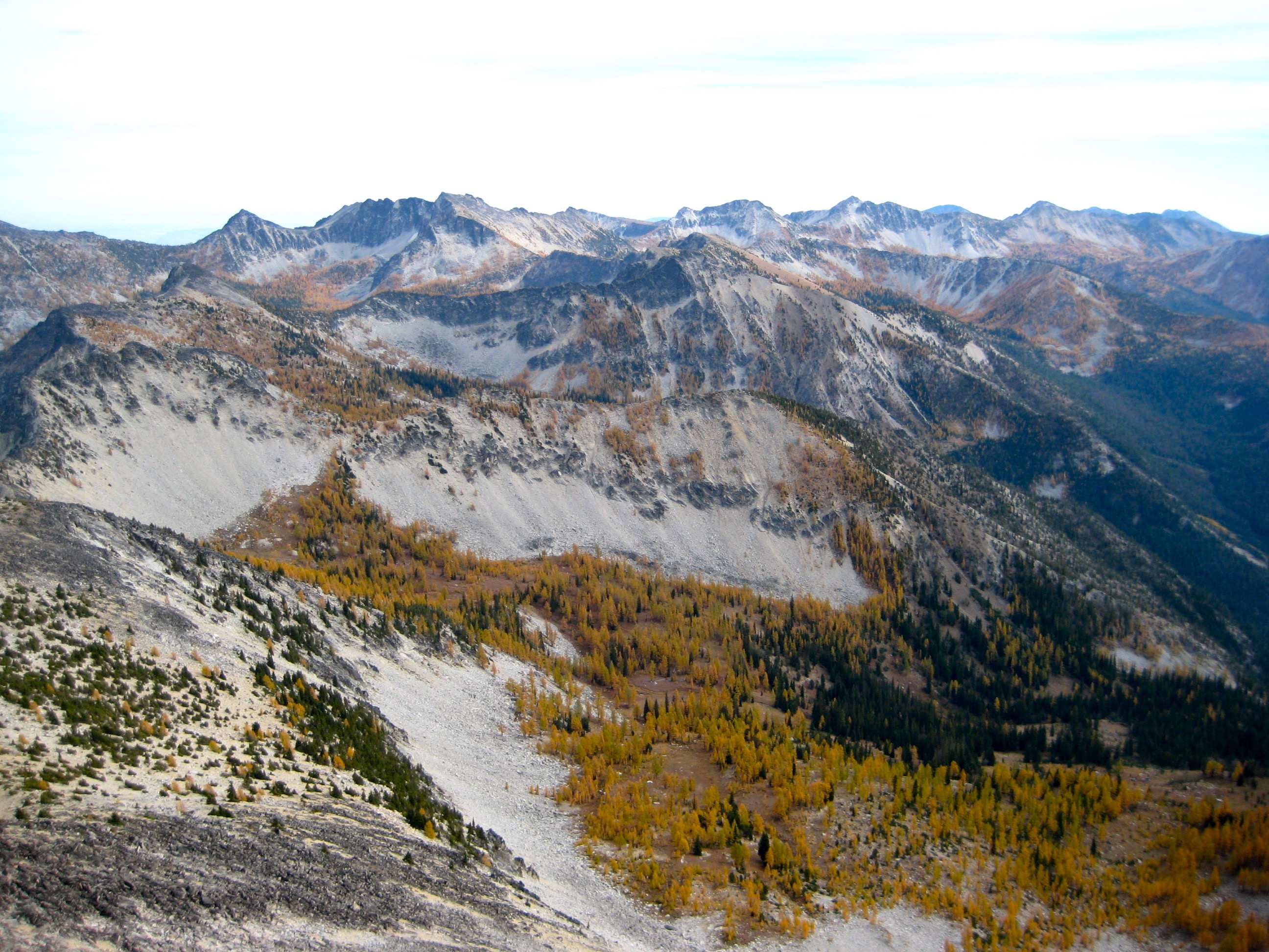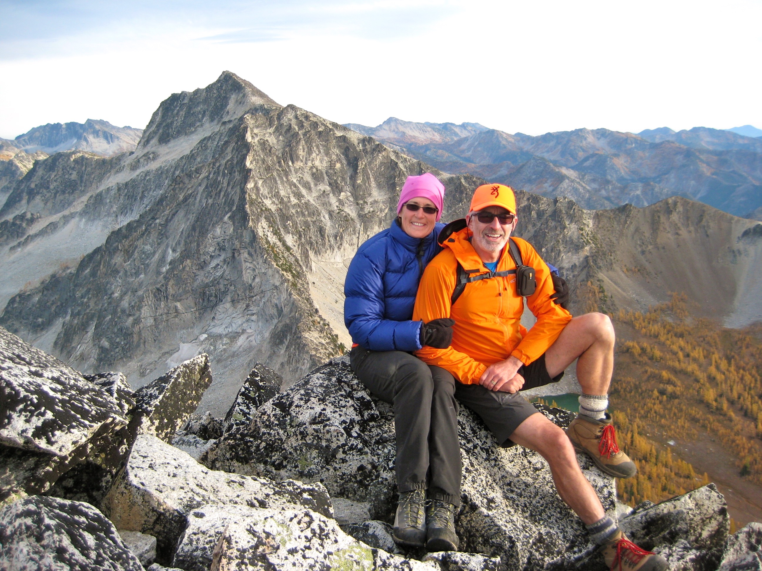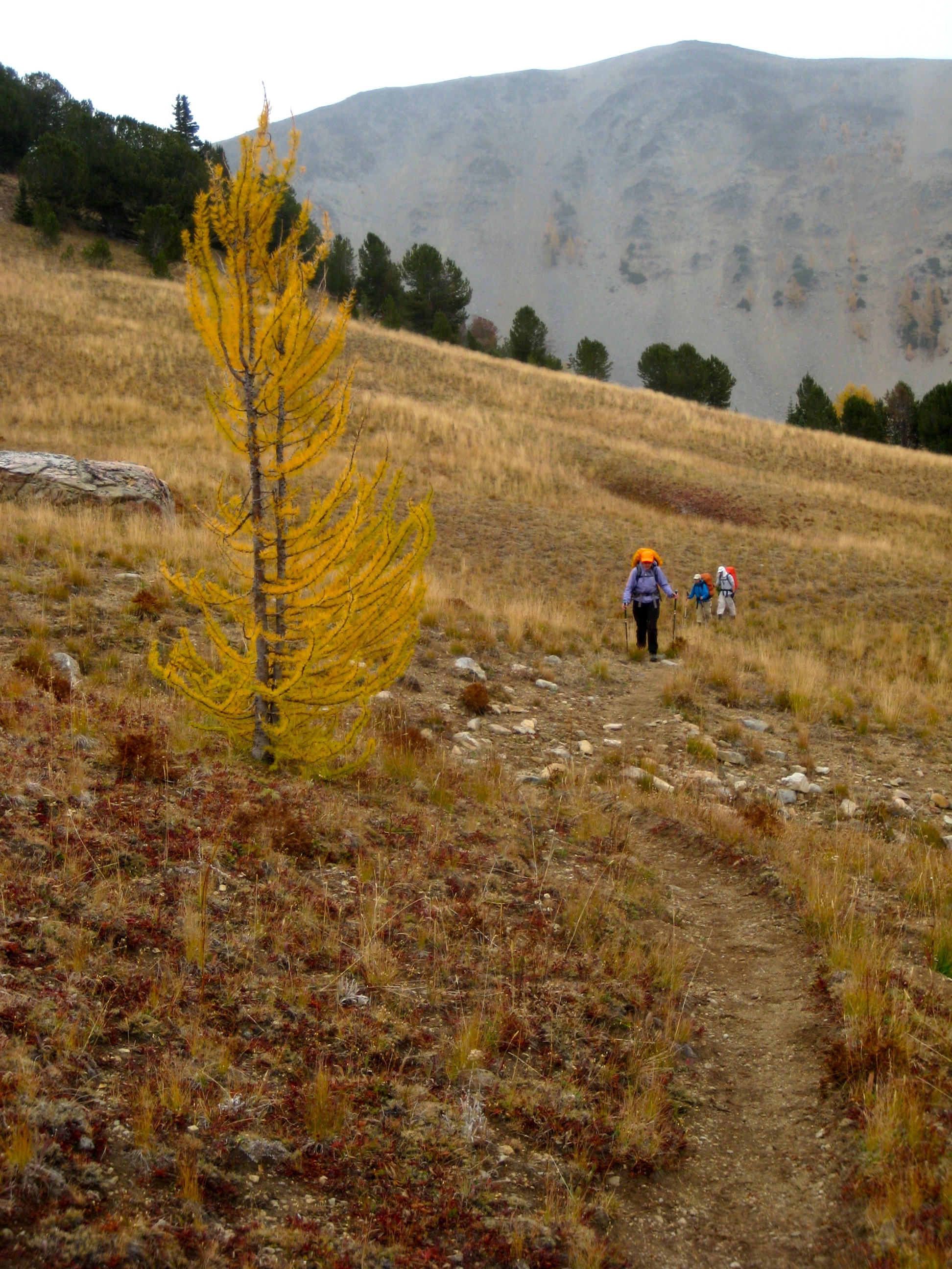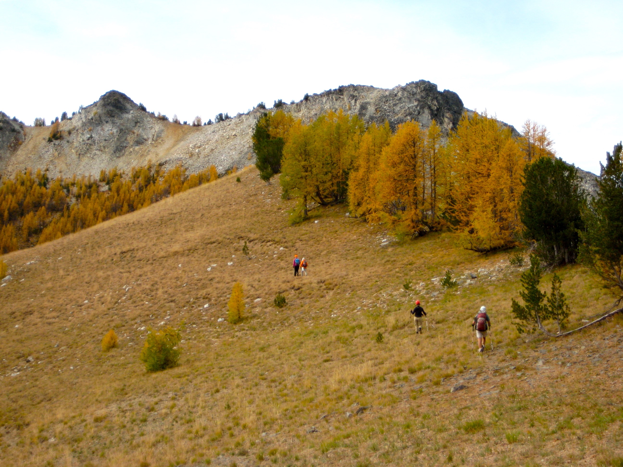 For this year’s Golden Larch Trip, I headed into the Sawtooth Mountains with Fay, Doug H, Steve, Deb, and Eileen. The larch trees rolled out their best autumn regalia for us, and the weather was a bit unsettled but generally mild.