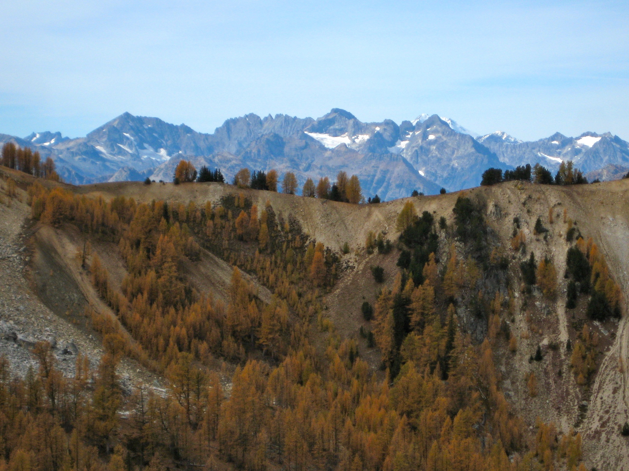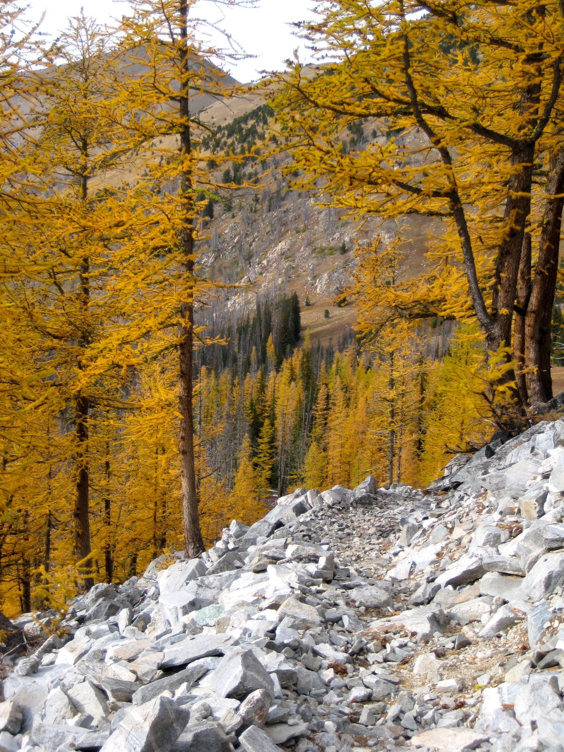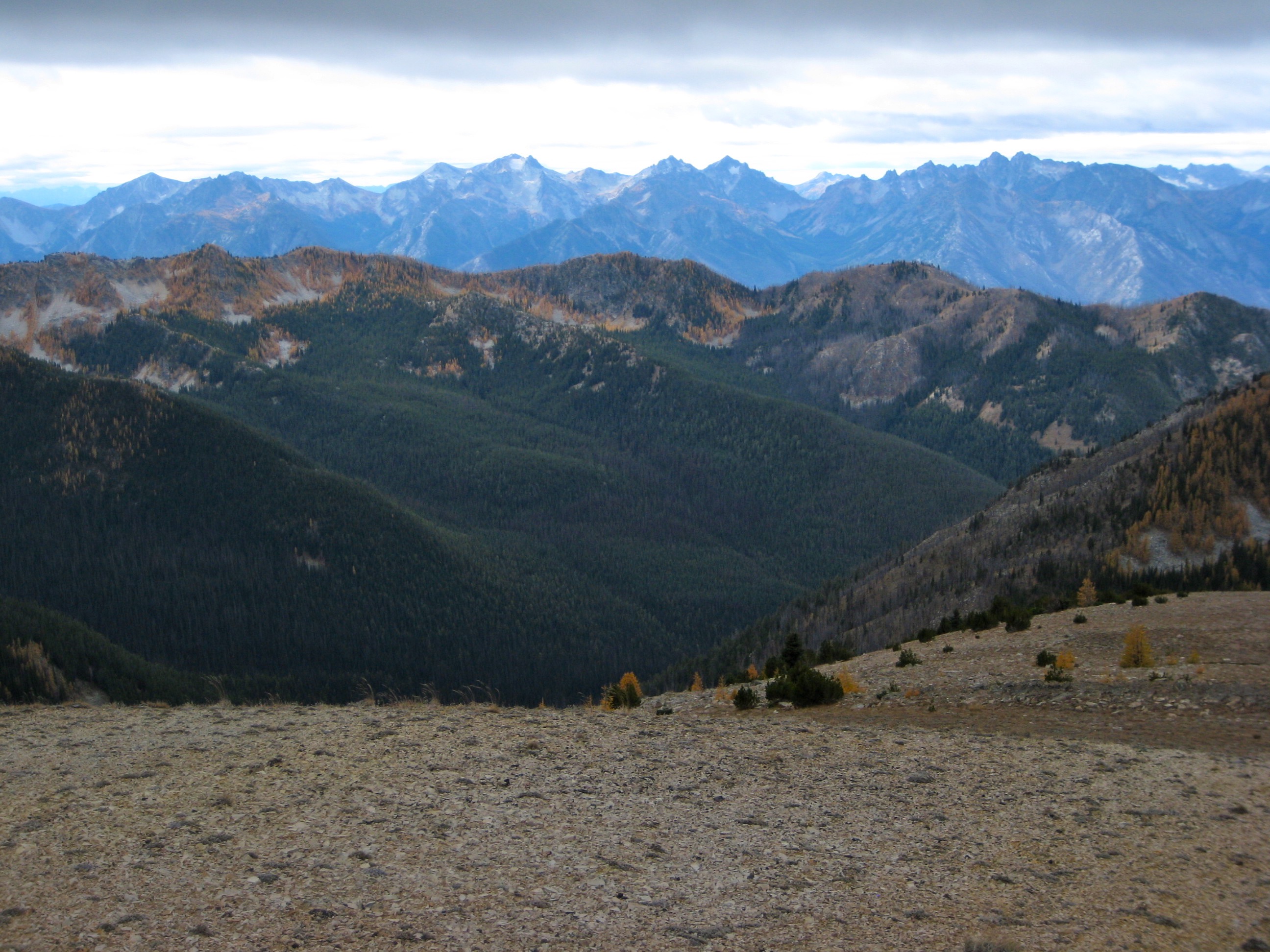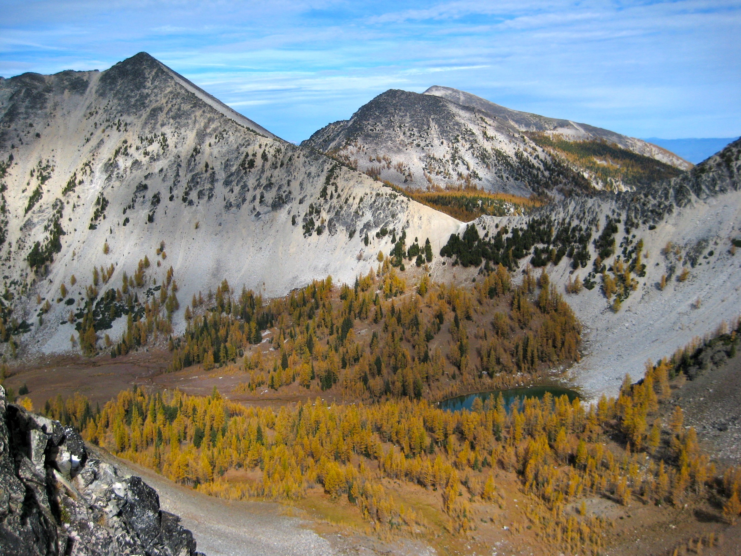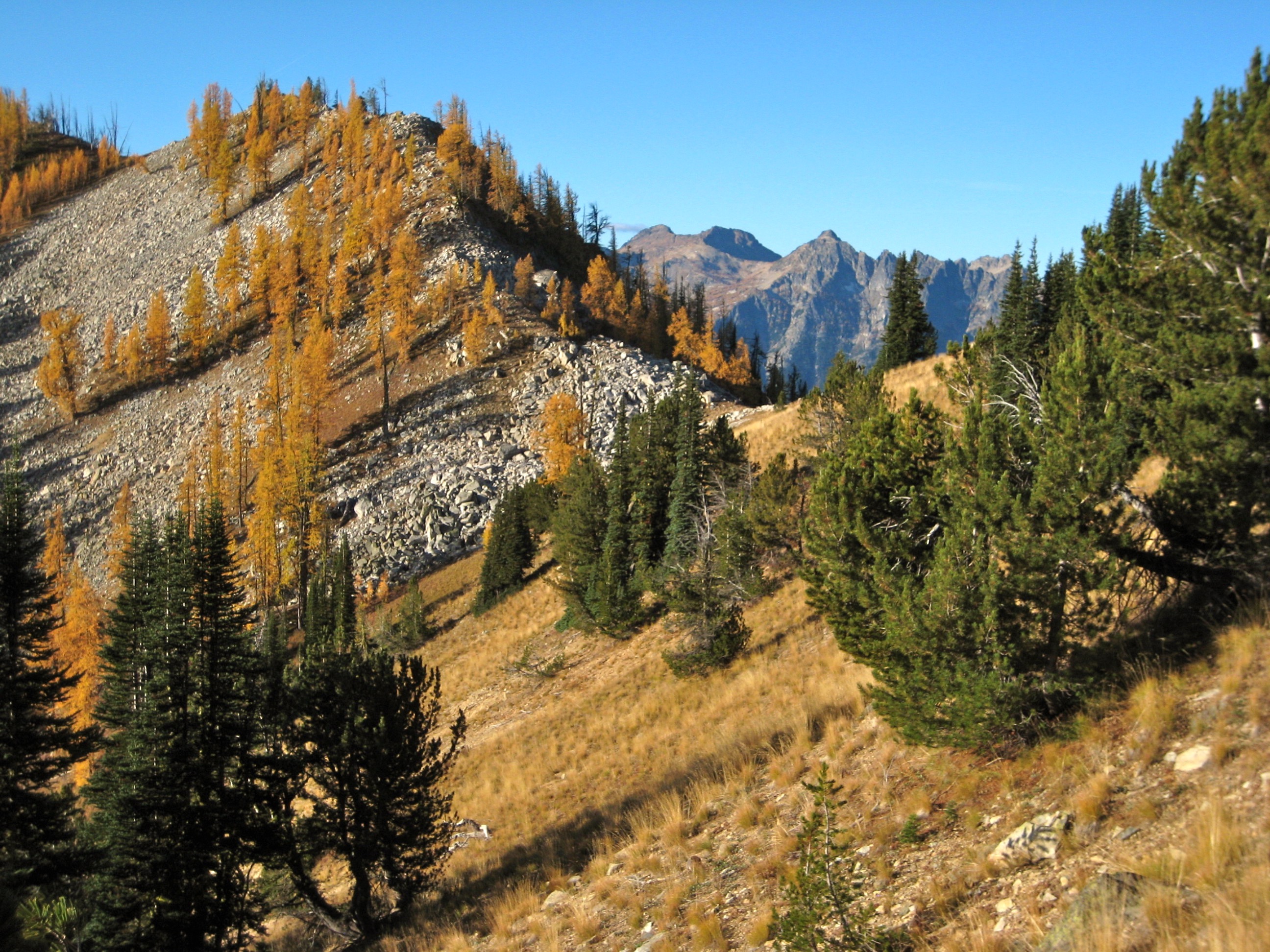For this year’s Golden Larch Trip, I headed into the Sawtooth Mountains with Fay, Doug H, Steve, Deb, and Eileen. The larch trees rolled out their best autumn regalia for us, and the weather was a bit unsettled but generally mild.
