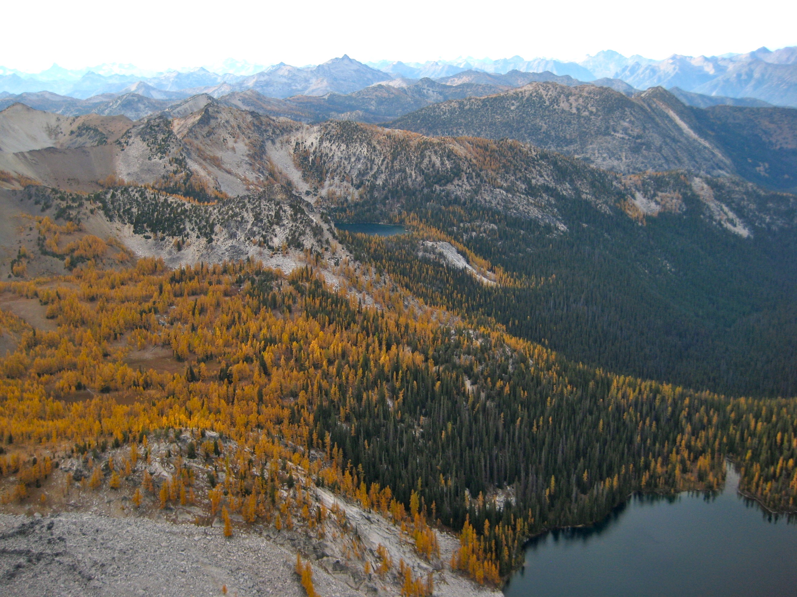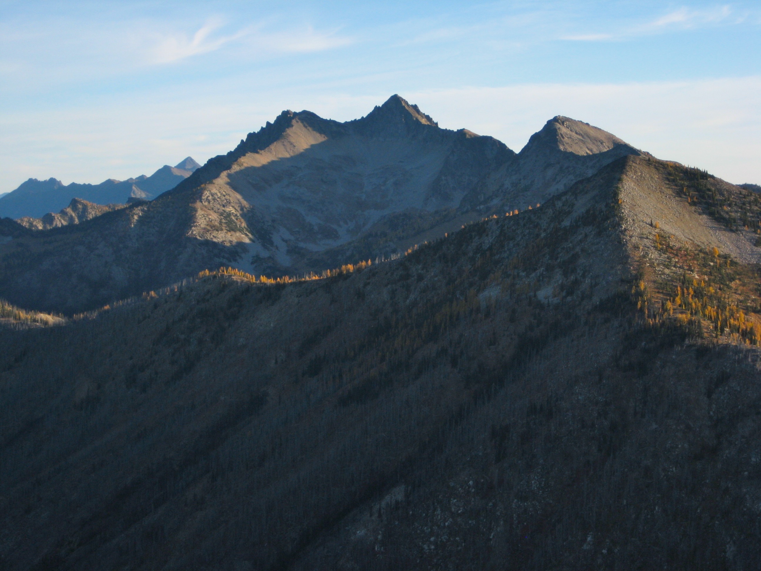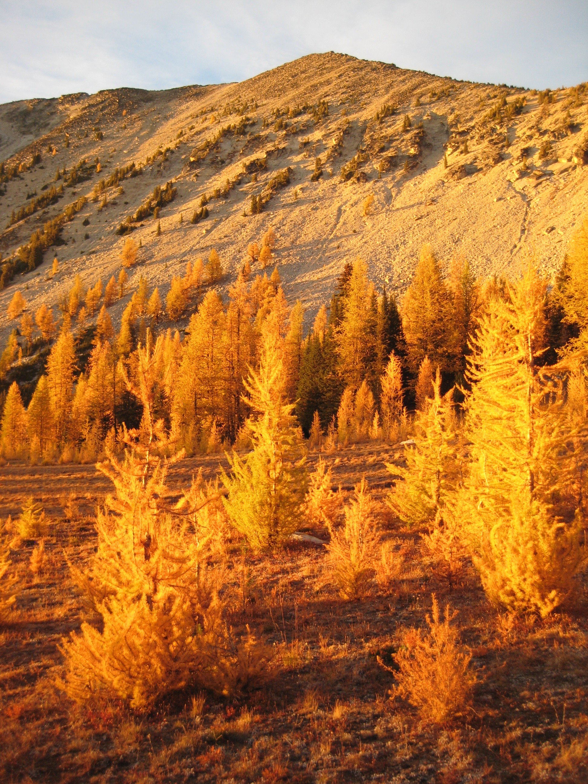 Back at camp, we hooked up with Doug, who had just returned from a successful jaunt out to Oval Peak. It was a warm evening, and the setting sun turned the Star Lake basin ablaze with larch color.