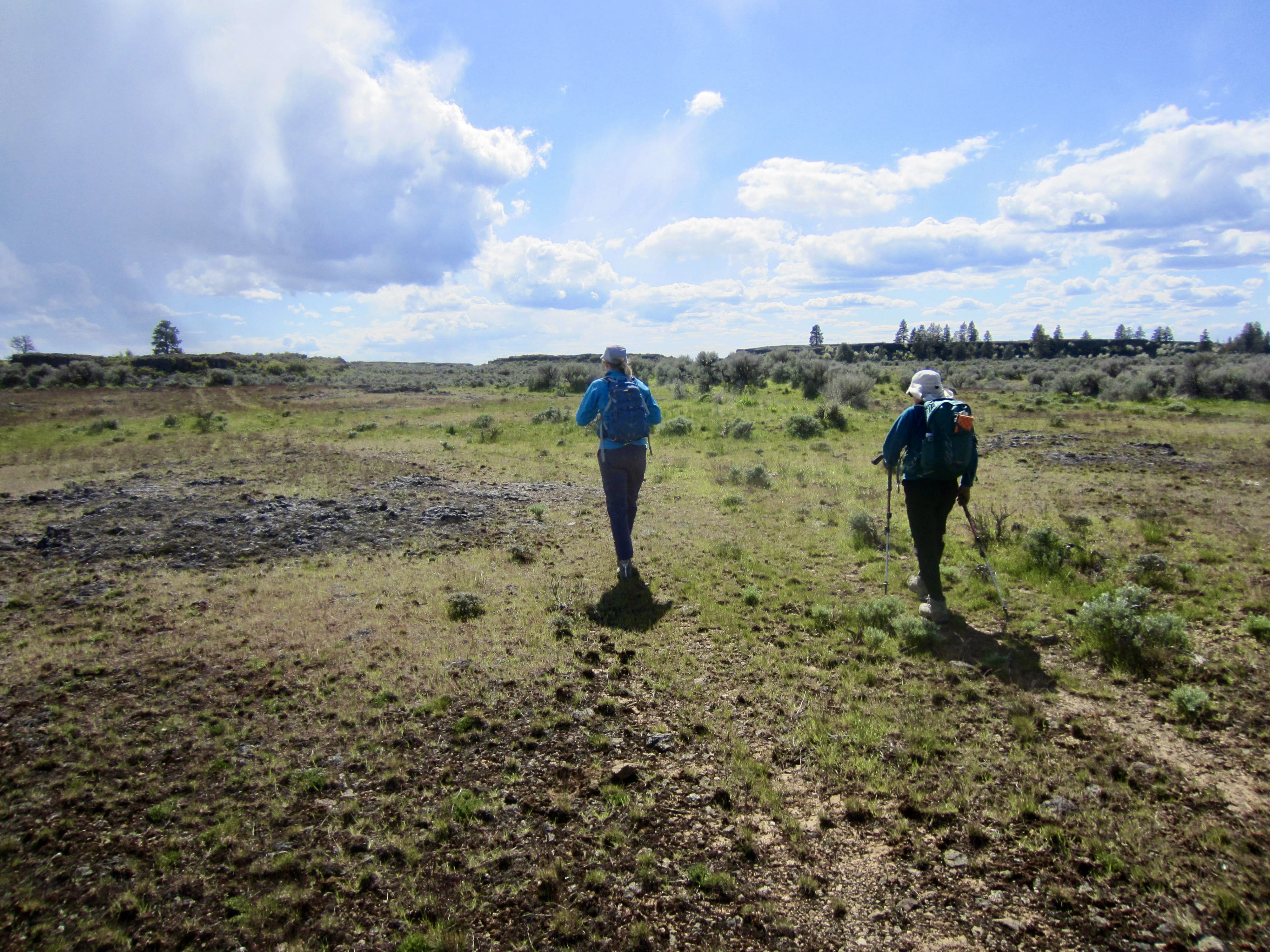 We didn’t know in advance what we would find atop the plateau, so there was a small fear that it might be covered by dense sagebrush or riddled with erosion channels. Thankfully, it turned out to be a remarkably flat surface blanketed with low grasses and dotted with sagebrush. We were able to maintain a brisk pace while making a southwesterly beeline at a fairly uniform elevation of about 2300 feet.