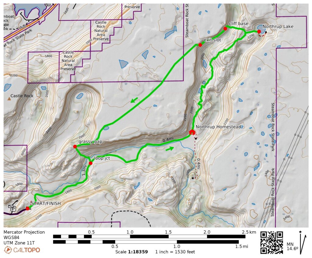 Starting & Ending Point: Northrup Canyon Trailhead at Northrup Canyon Road gate (Elev. 1800 feet)