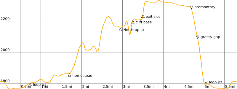 High Point: Upland plateau near exit slot (Elev. 2340 feet)