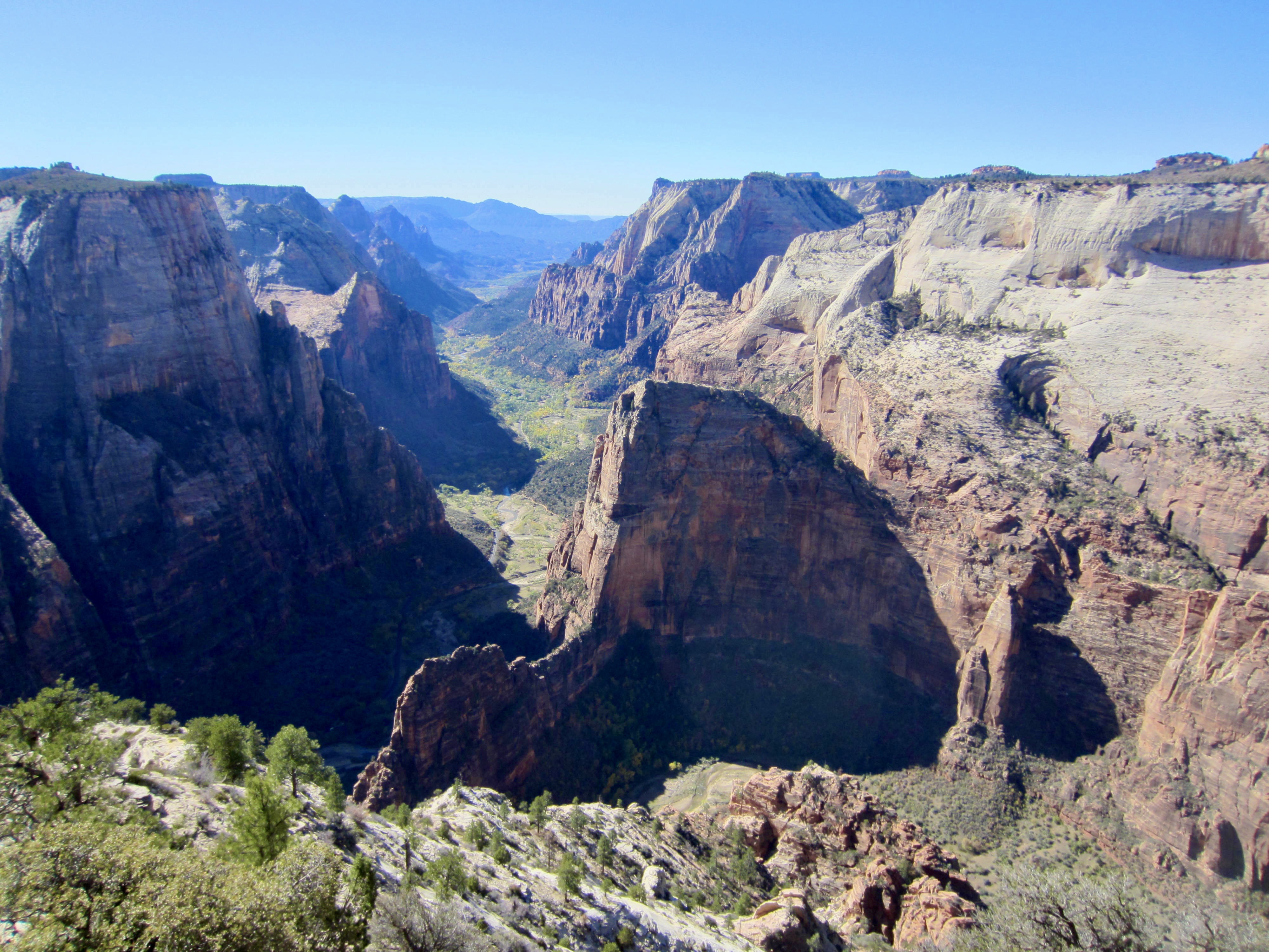 Although Angel’s Landing is arguably the most popular and dramatic day-hike in Zion National Park, I would say that Observation Point is probably the best viewpoint day-hike. This high, rocky promontory sits at the eastern edge of the park and overlooks the heart of Zion Canyon. Historically, the hike to Observation Point could be started directly from the canyon floor, but that trail was obliterated by a rockslide several years ago; as such, the only current access is from the eastern uplands.