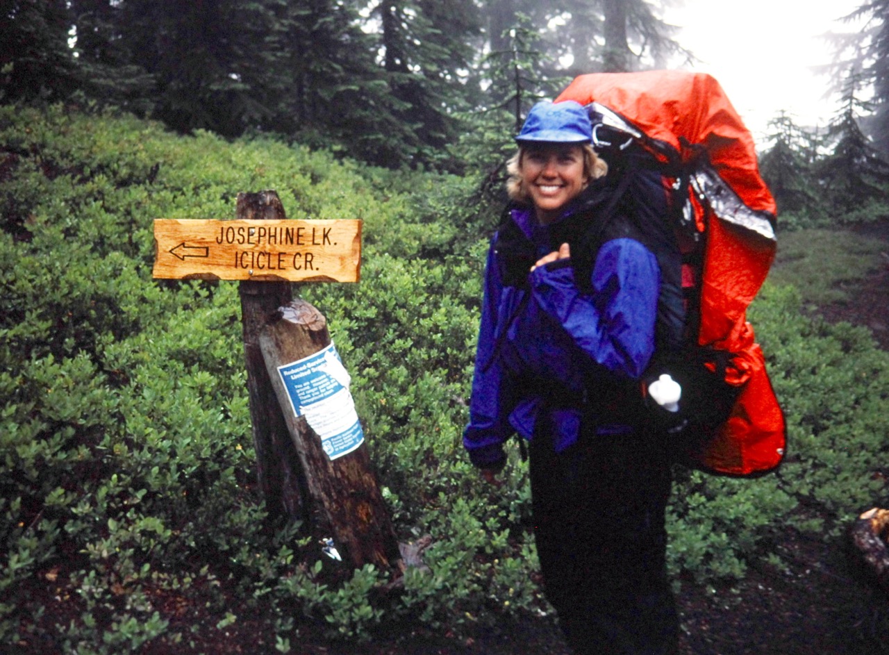 Aug 2000: Laura On Rainy Trail To Chain Lakes