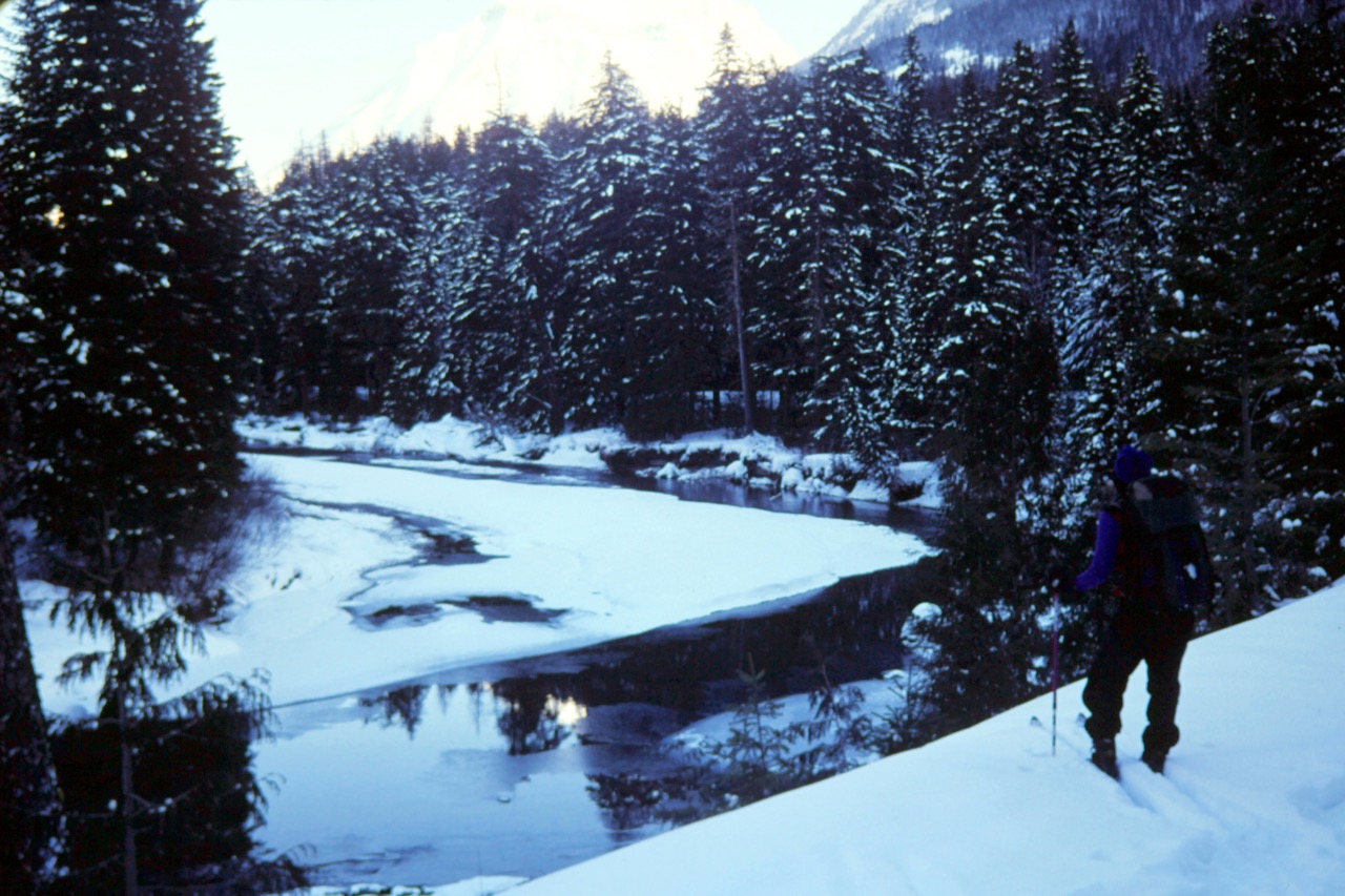 Jan 2001: Laura Surveying Snoqualmie Mtns Red Mtn