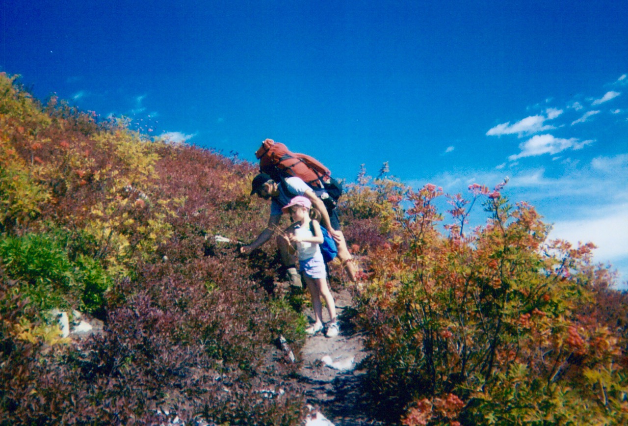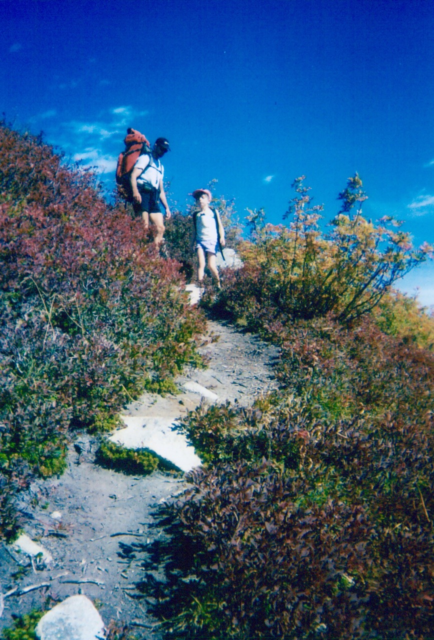 Sep 2001: Jim and Brooke Hiking Down Mt McCausland