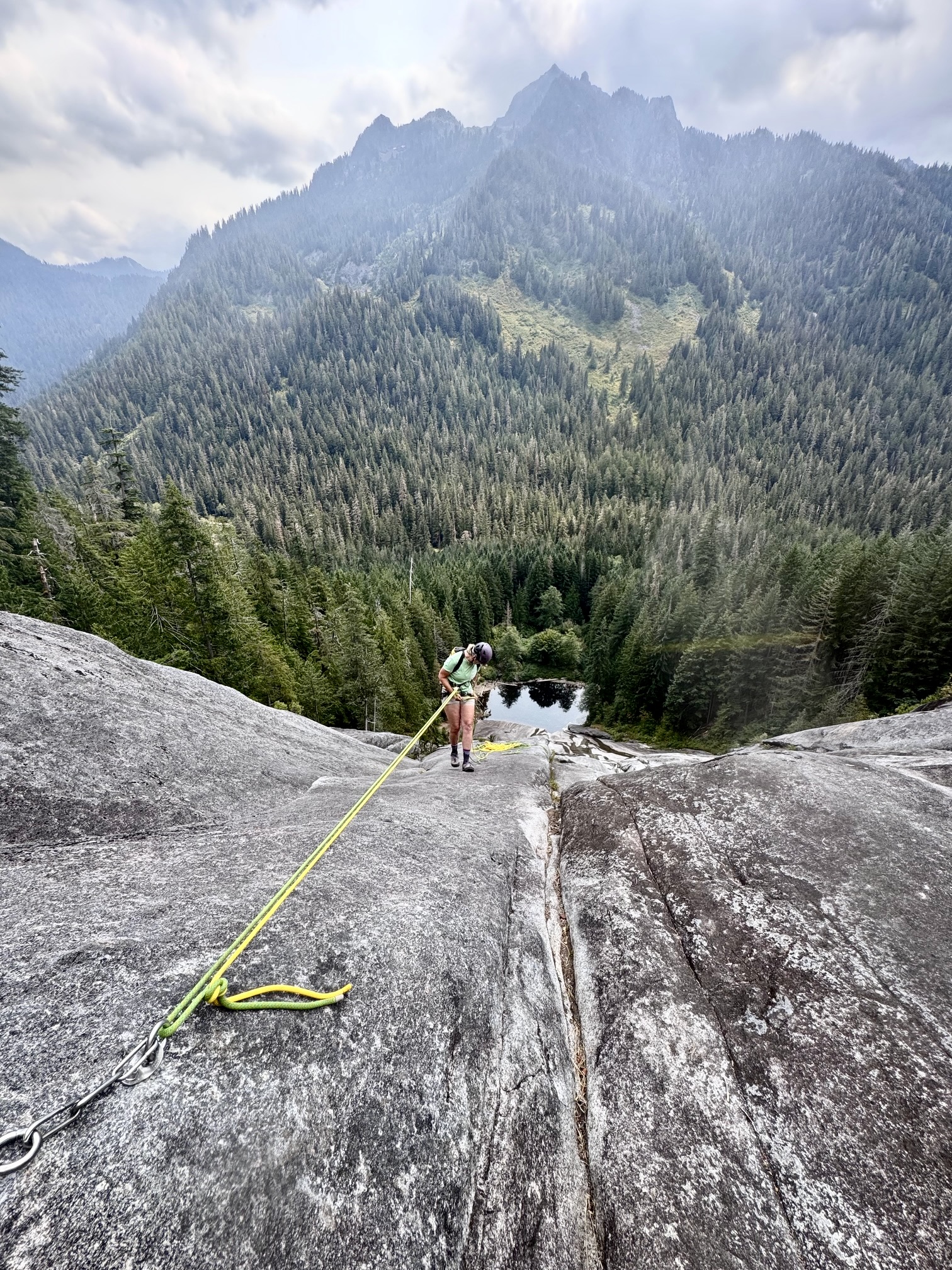 Kellie and I used a single 60-meter rope during our 2024 climb, whereas Eileen, Yoko, and I used two 60-meter ropes during our 2025 climb. It should be emphasized that a 60-meter rope barely reaches between the belay anchors and rappel anchors on Pitch 3, but it does indeed reach. As such, a 50-meter rope would not be adequate, but a 70-meter rope is truly not necessary.