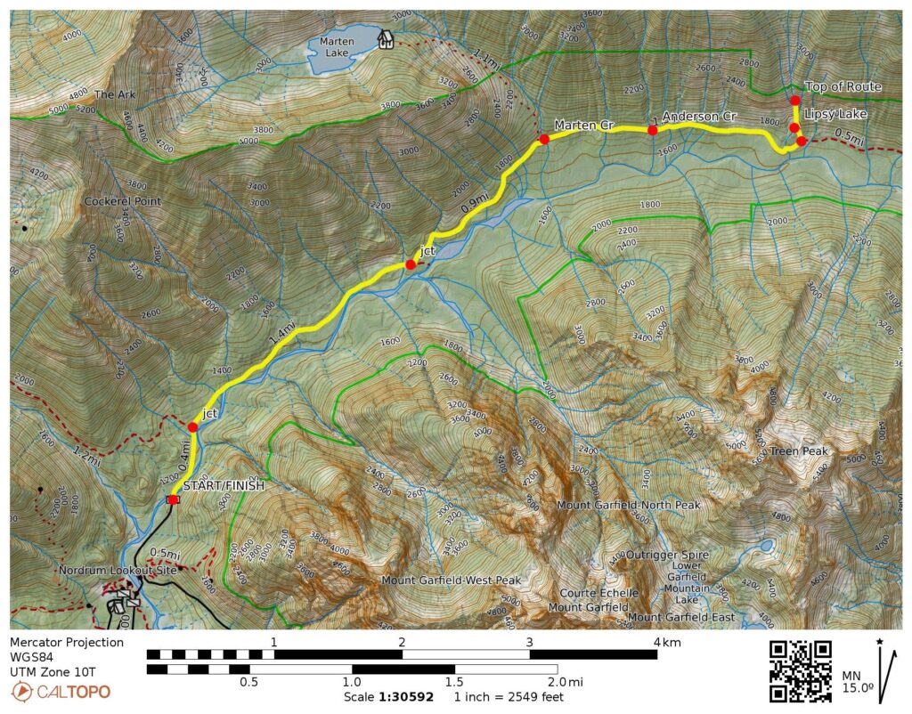 Approach Way Points: Taylor River Bridge & Snoqualmie Lake Trail / Quartz Creek Trail junction & Marten Creek Bridge & Anderson Creek crossing & Otter Creek crossing & Otter Falls Trail junction & Lipsy Lake (trail hike)