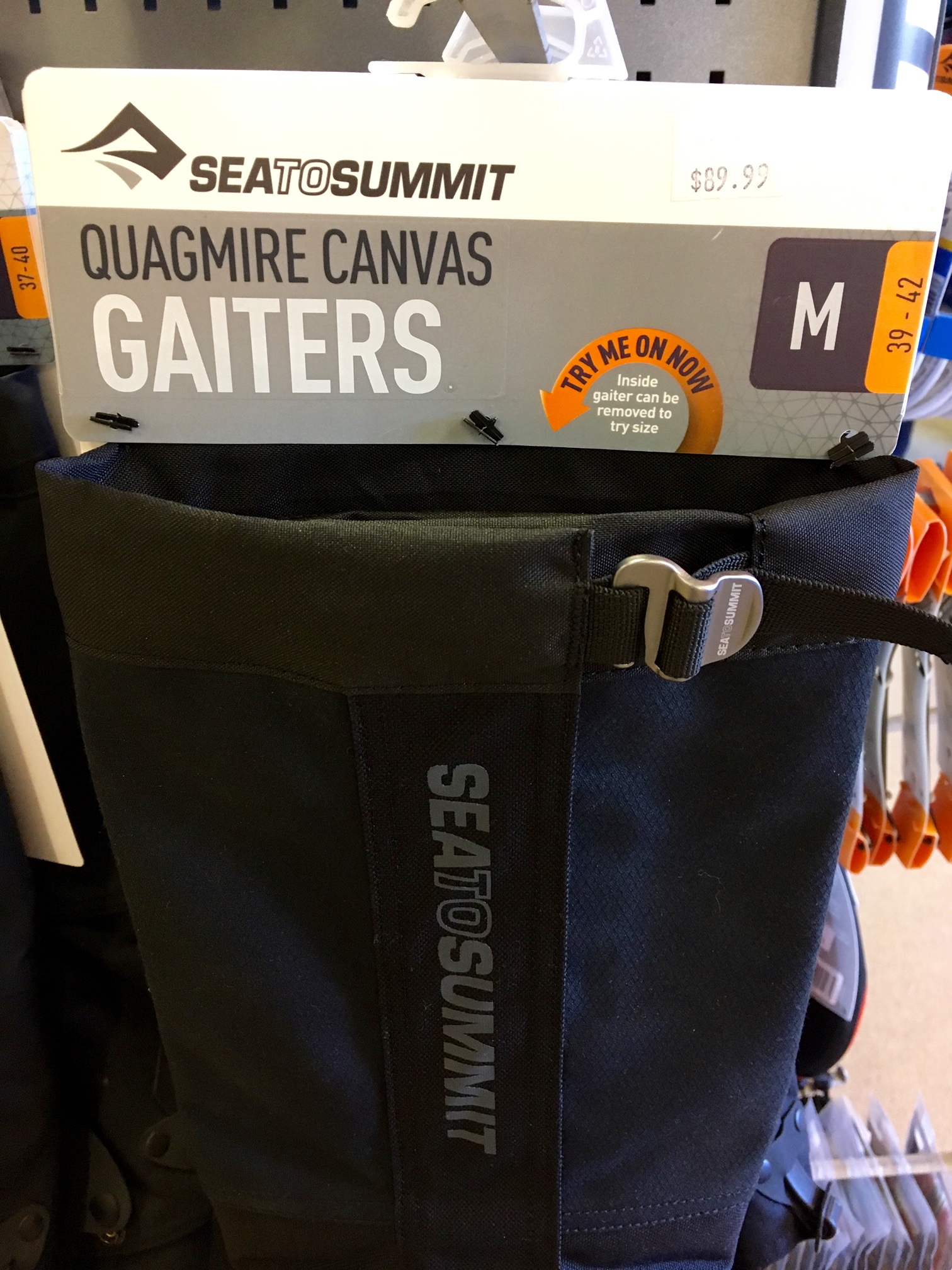 If you want to take it one step further and look like a true Tasmanian (or would that be “Tasmaniac”?), I recommend getting a pair of Quagmire Canvas Gaiters made by Sea To Summit.  These stylish and superbly constructed leggings aren’t actually guaranteed to fend off aggressive snakes, but they seem likely be more effective than any other trail gaiter I’ve seen.