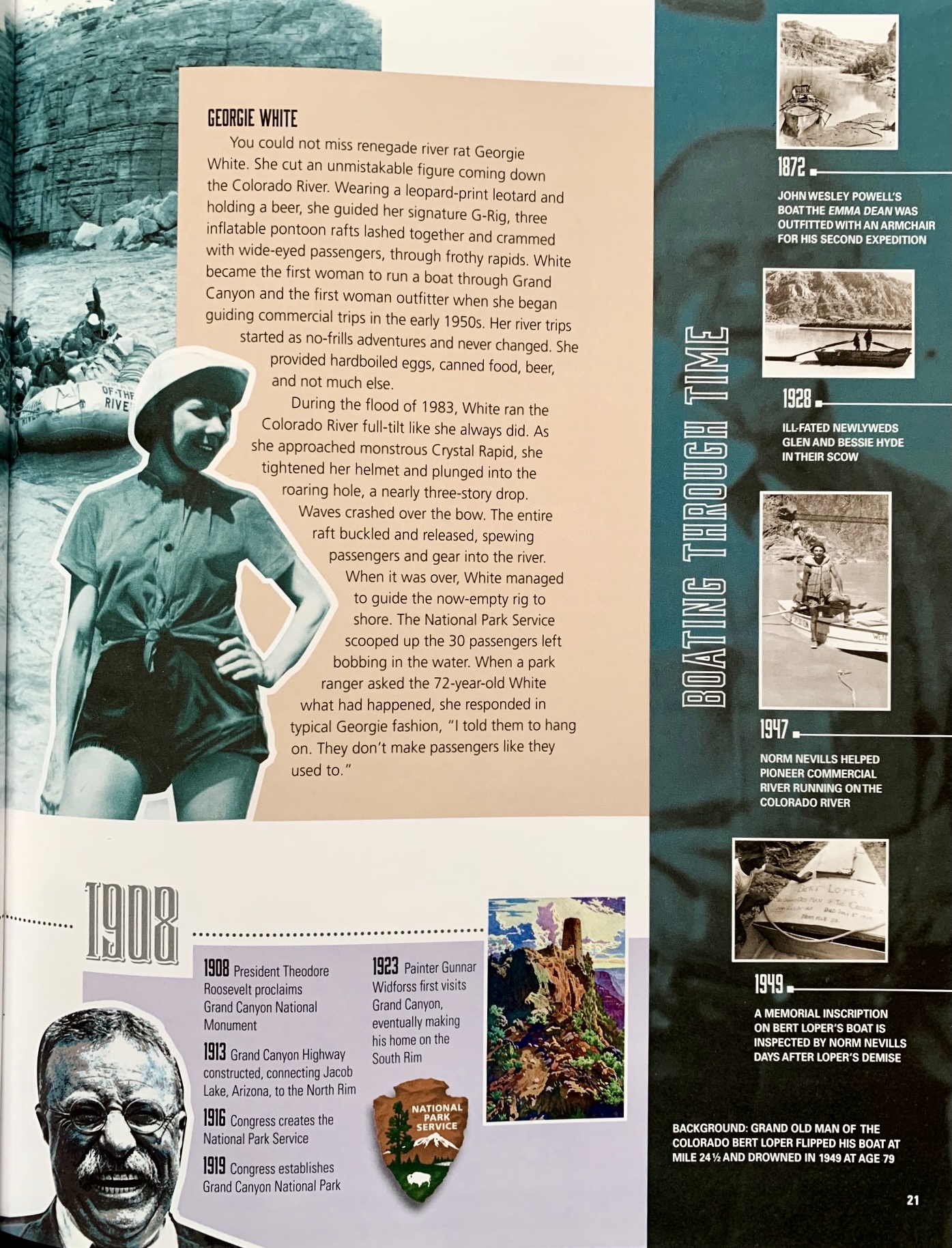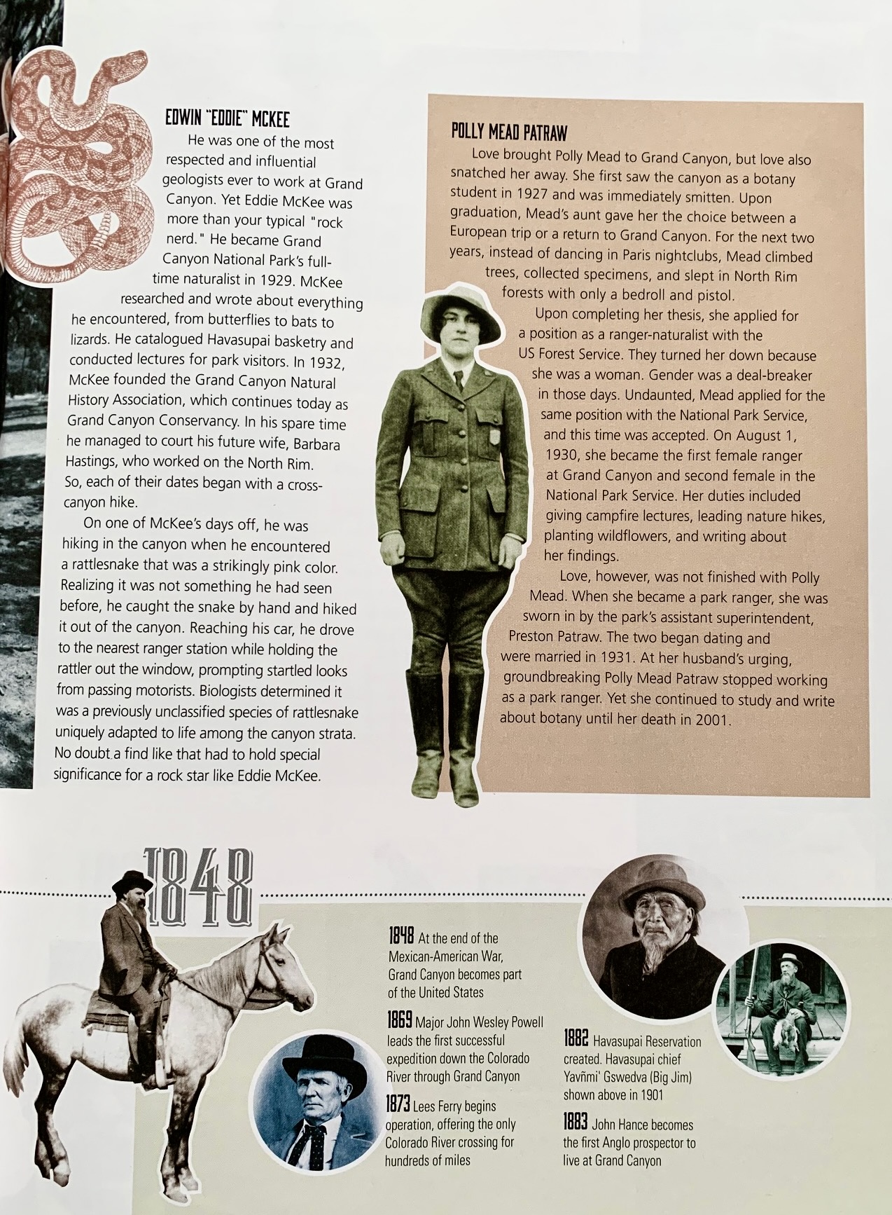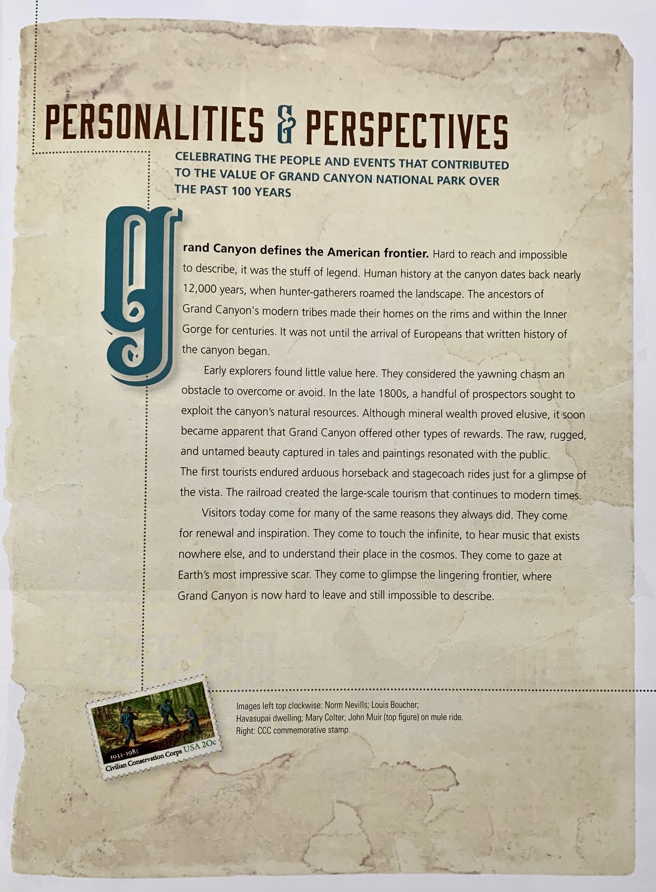 The following vignettes showcase some of the people and events associated with the Grand Canyon throughout its history. These were published in a special anniversary publication by the National Park Service and Grand Canyon Conservancy, celebrating the 2019 centennial of Grand Canyon National Park.