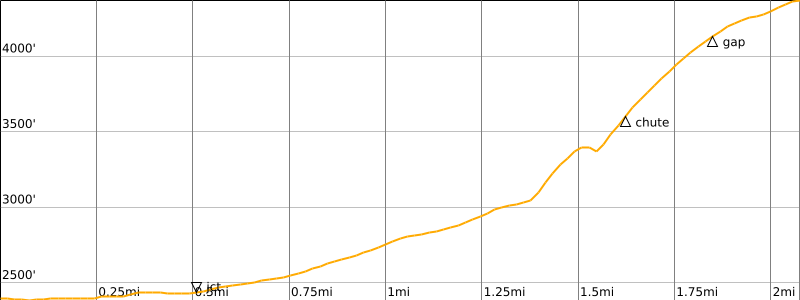 Approximate Stats: 4.2 miles traveled; 2050 feet gained & lost; 1.7 hours up; 1.7 hours down.