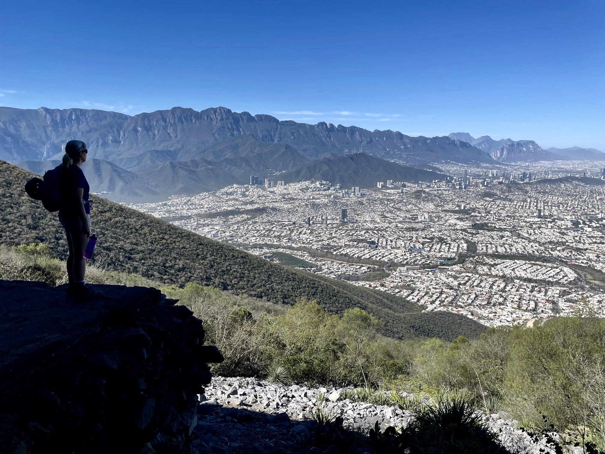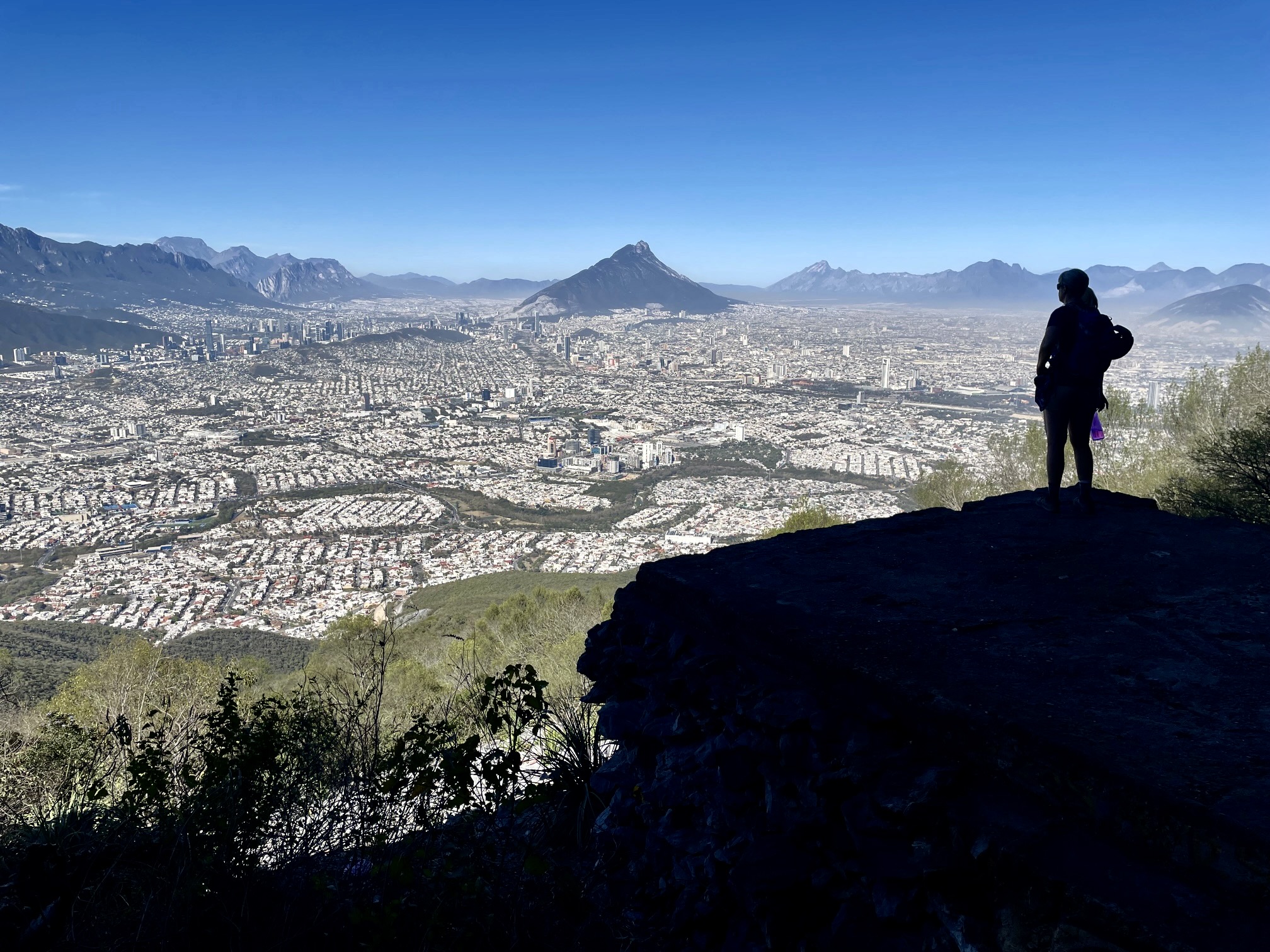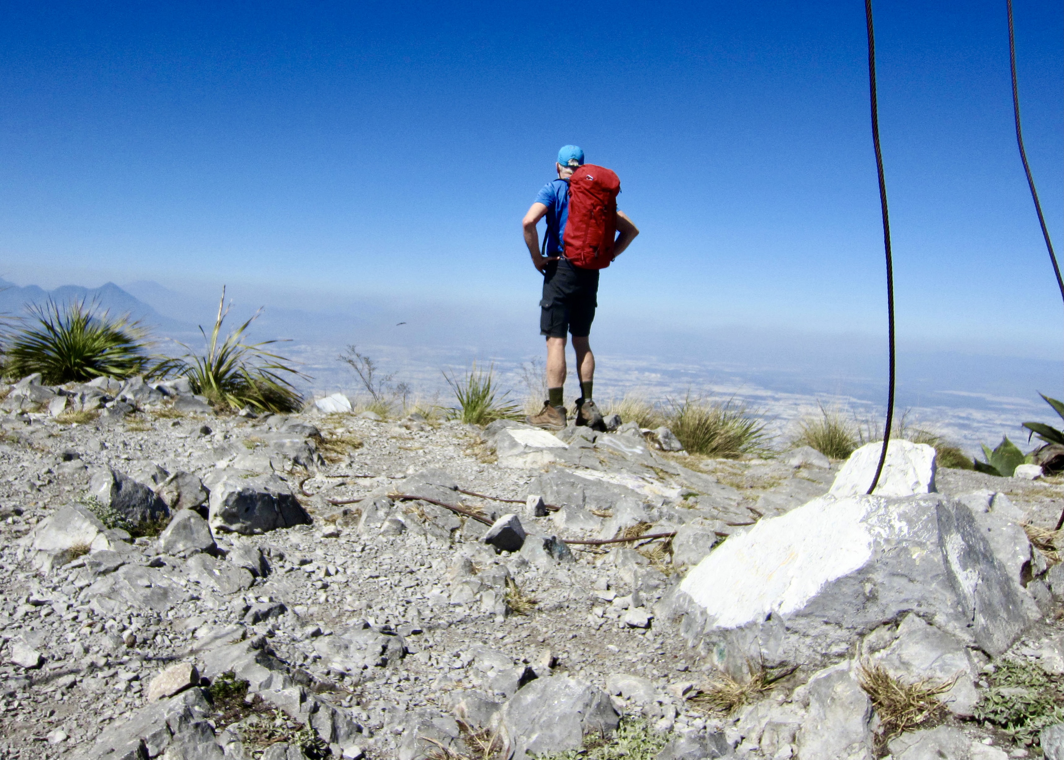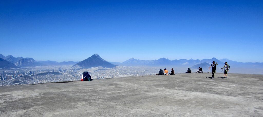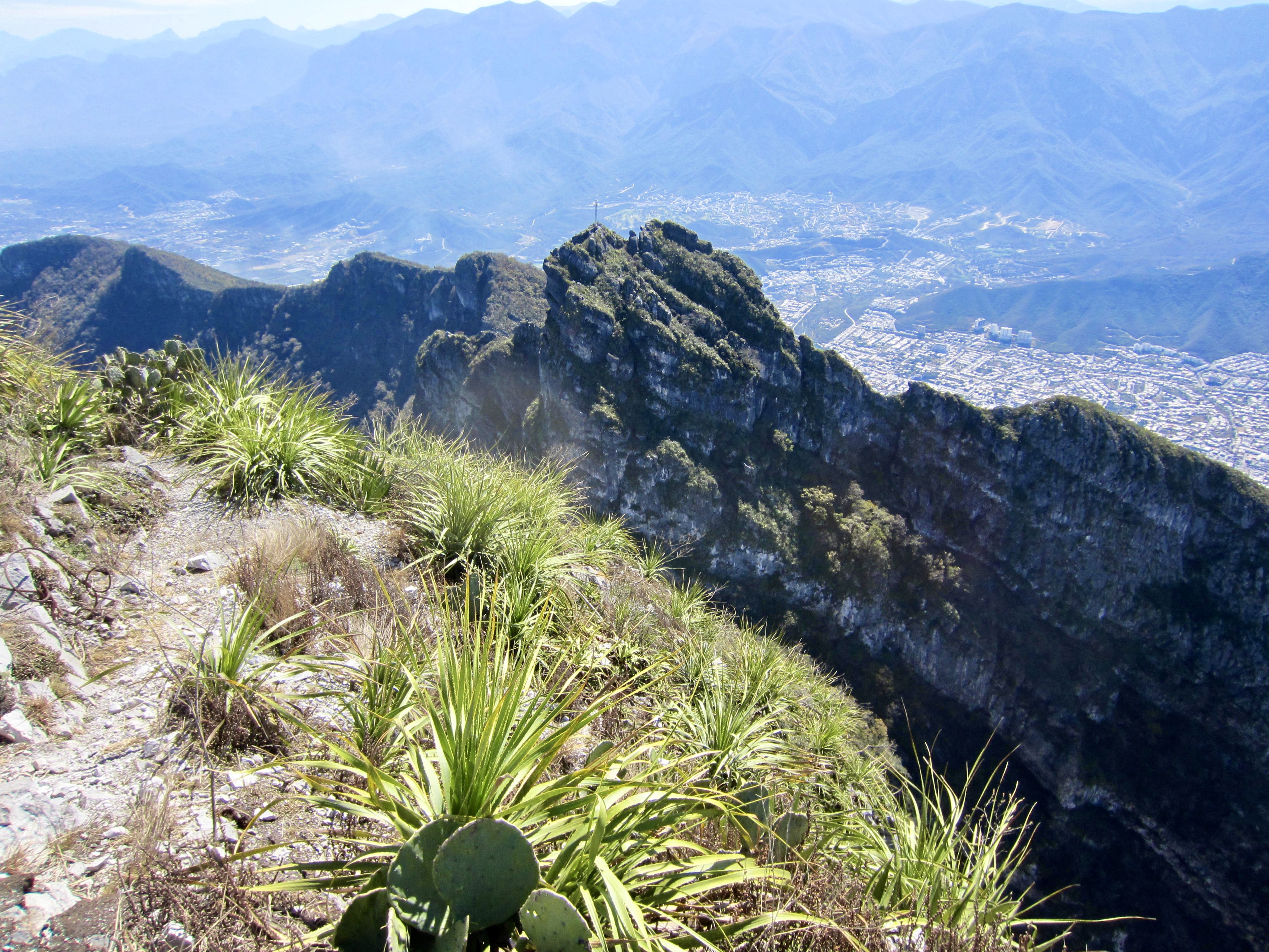 Thanks to its position on the southeastern fringe of Monterrey, this peak provides an outstanding vantage of the entire metropolitan area, which has a population exceeding 5 million. Amidst the urban sprawl, Cerro de las Mitras (“The Miters Mountains”) rise up like a breaking wave. Closely to my north and slightly lower, Pico Silla Antena displayed its summit communication structures.