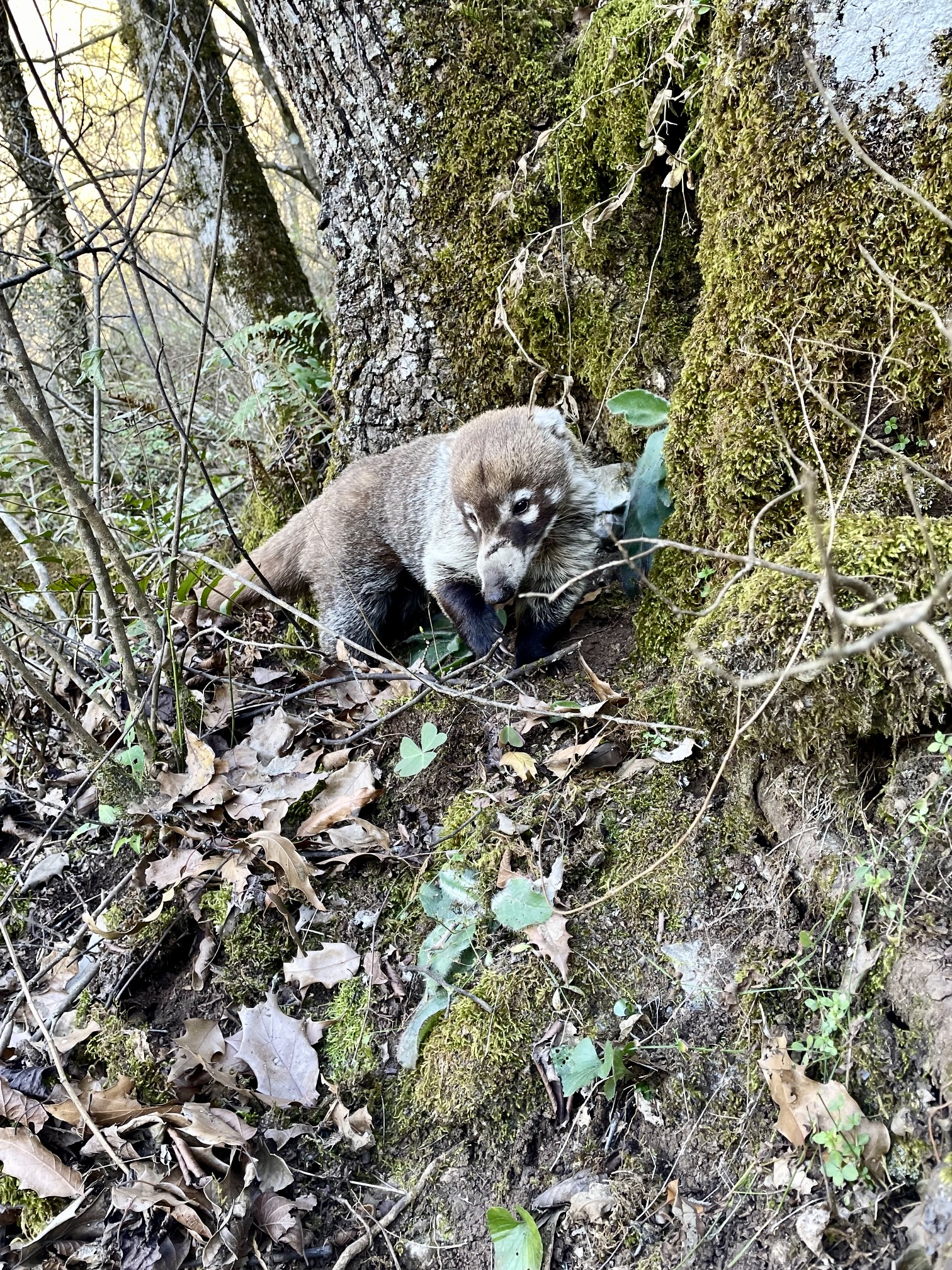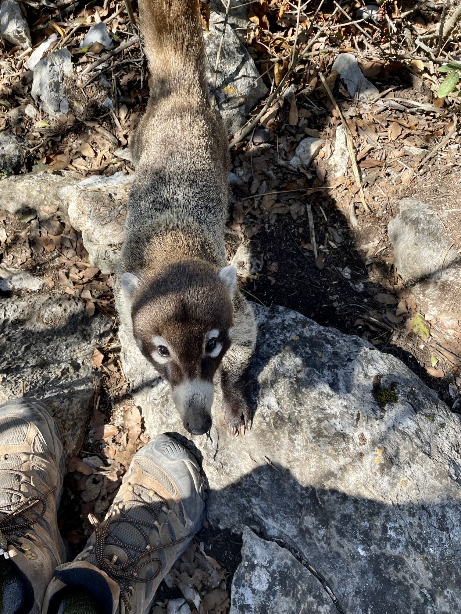 During our traverse, we encountered a strange little animal with a long tail and a pig-like snout. It seemed neither afraid nor threatening; instead, it seemed friendly and curious. Our later research revealed that it was a coati, informally known as a Mexican badger. The fuzzy little critter probably hoped that we would offer some snacks.
