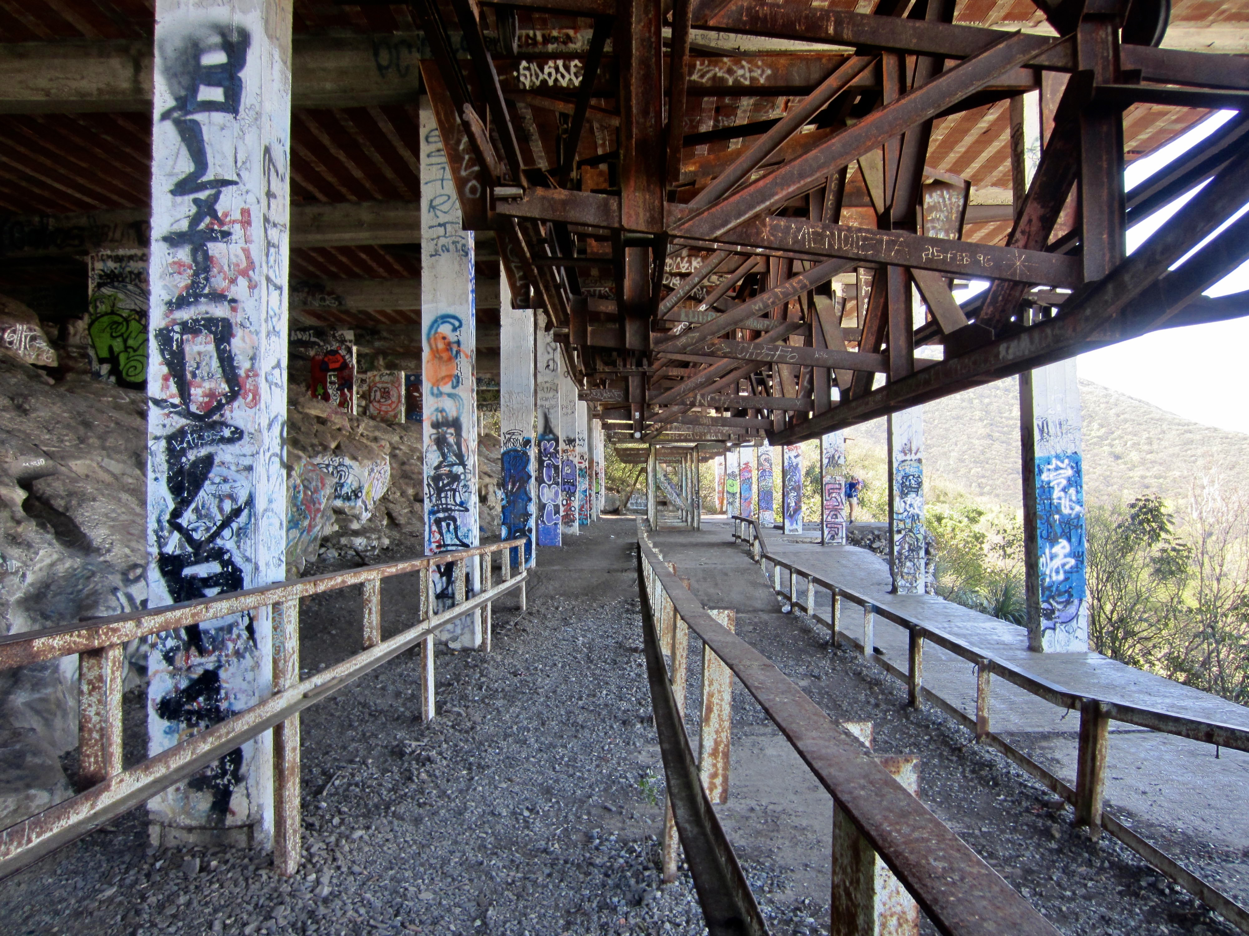 By mid-morning, we arrived at a short side-trail that leads down to an abandoned teleferico (gondola or aerial tramway) top station (1.3 hours + 1.6 mi / 2.6 km + 1700 ft / 520 m from TH). This gondola facility reportedly opened on June 2, 1961, to whisk residents and tourists up to a mid-mountain viewpoint. Tragically, it closed on the very same day when five people died due to a structural collapse. Now, the abandoned station serves as both an austere memorial and a marvelous viewpoint destination for thousands of hikers each year.