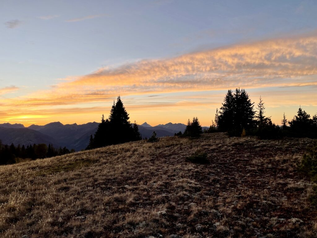 Despite our high and exposed location, there was no wind at any time during the night. We were able to watch a colorful sunset over the Cascade crest while eating dinner. This turned out to be our best campsite of the trip, and one of our best campsites of the entire year!