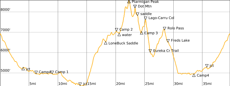 High Point: Ptarmigan Peak summit (Elev. 8614 feet)