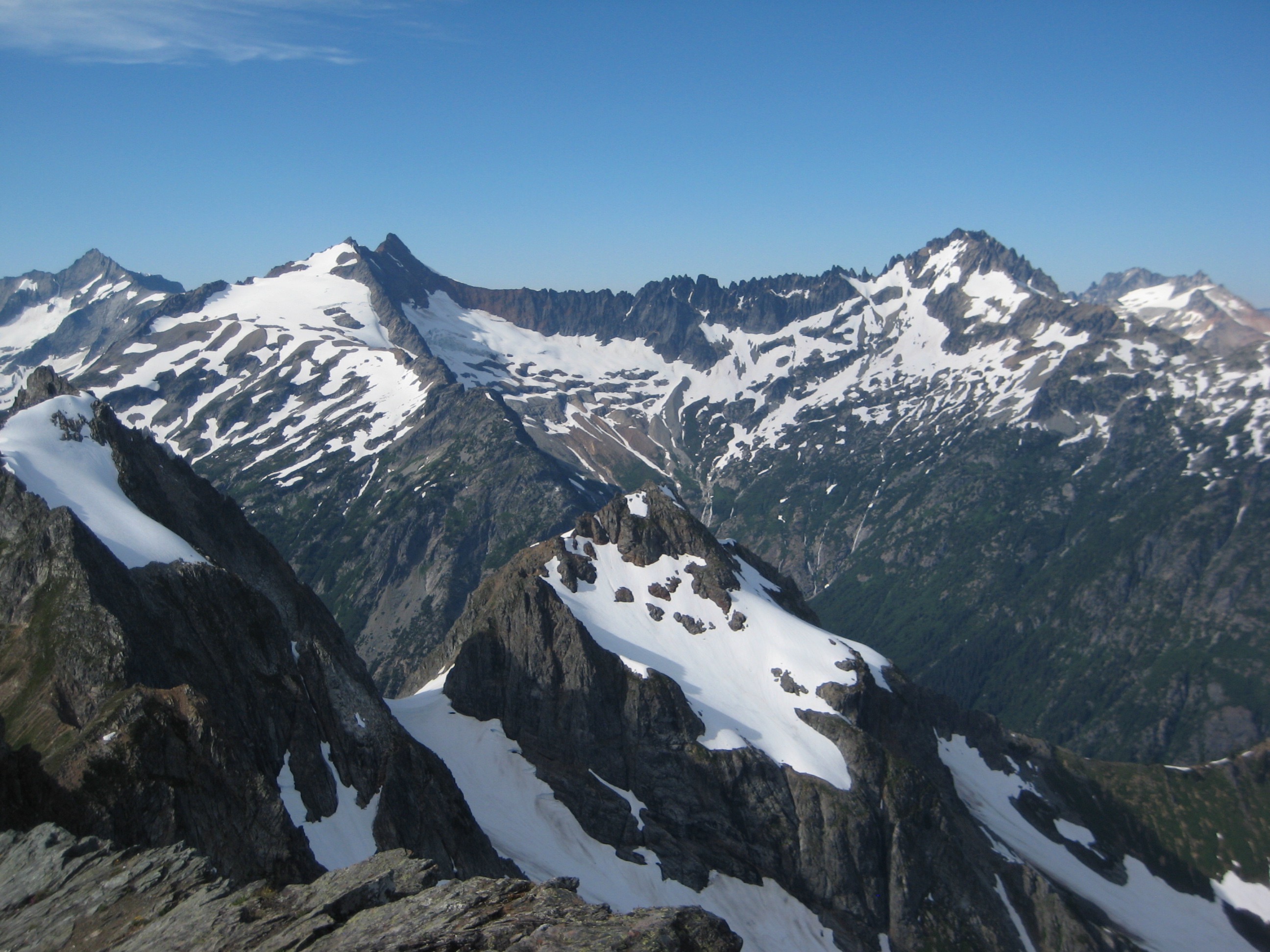 Gunsight Peak, Sinister Peak, and Dome Peak From Old Guard Peak