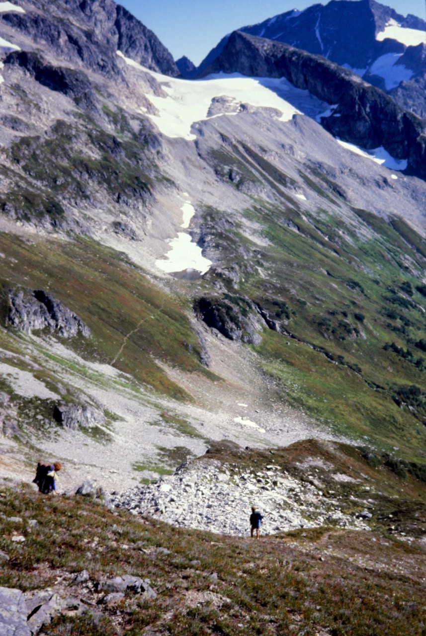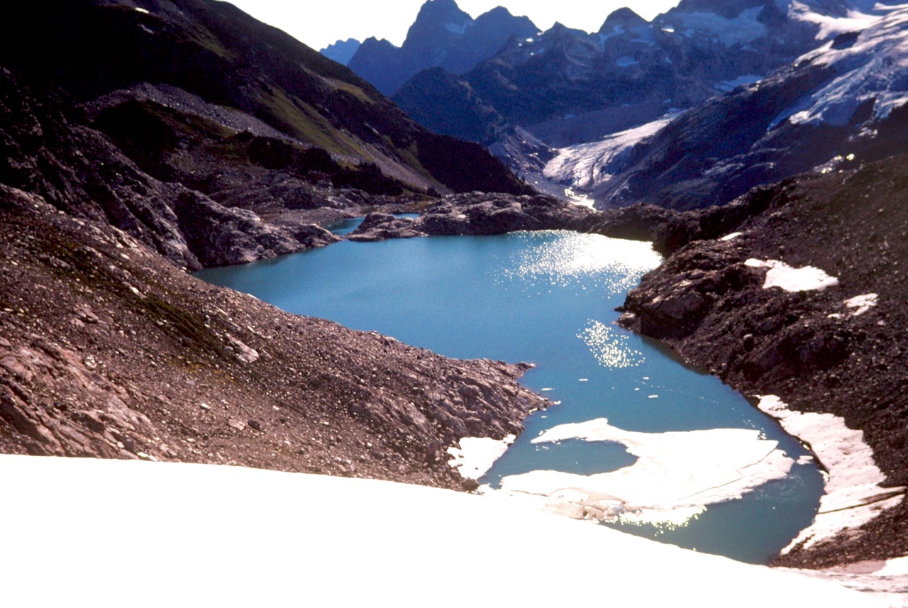 Way Points: Cascade River Vehicle Bridge & Cascade Pass Trailhead (road walk); Cascade Pass & Cache Glacier & Cache Col & Kool-Aid Lake & Middle Cascade Glacier & Spider–Formidable Col & Yang Yang Lakes & LeConte Ridge & LeConte Glacier & Sentinel Pass & South Cascade Glacier & Lizard Pass & White Rock Lakes & Downey Creek Saddle & Upper Downey Creek & Lower Downey Creek (trail hike & off-trail hike & rock scramble & snow climb)