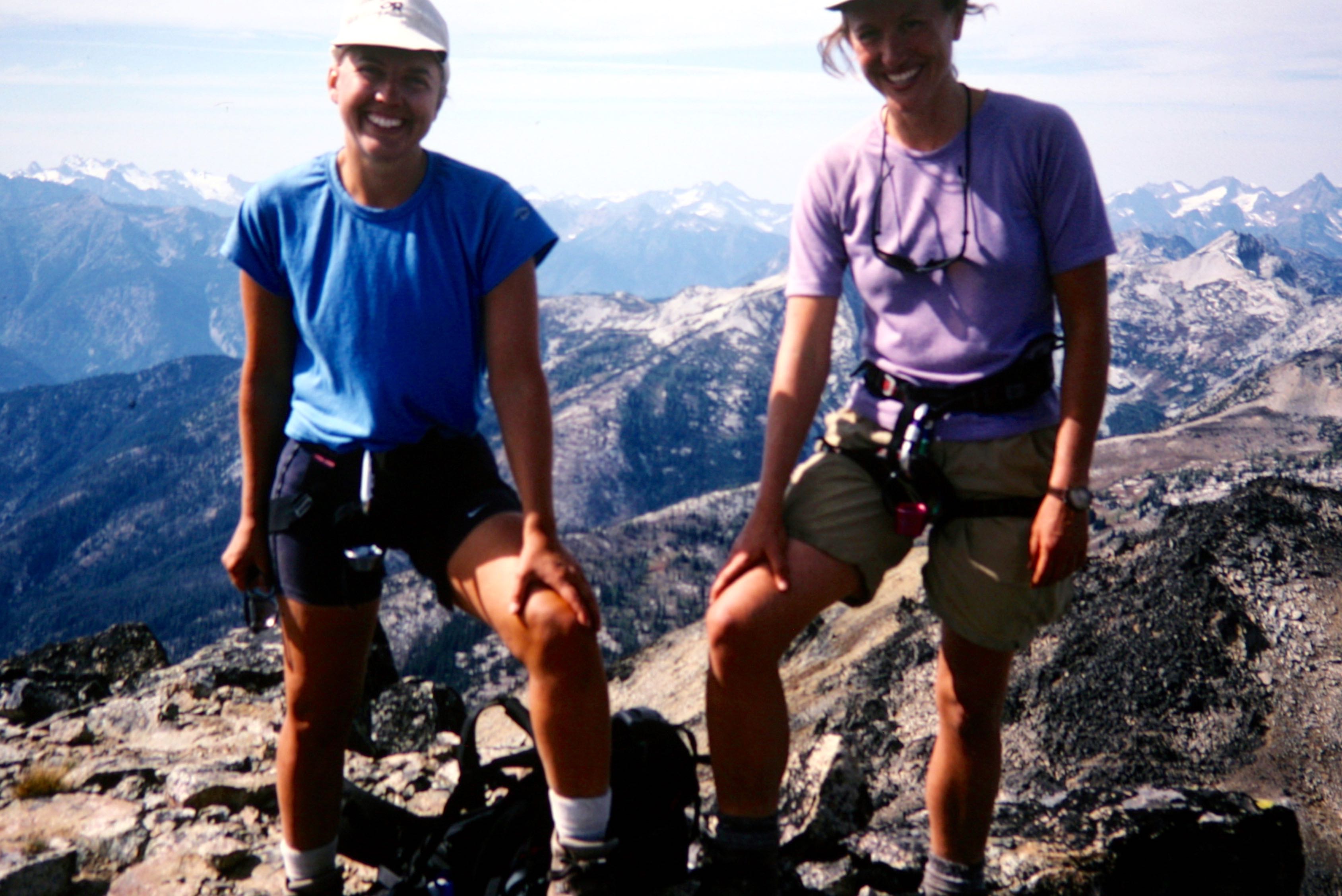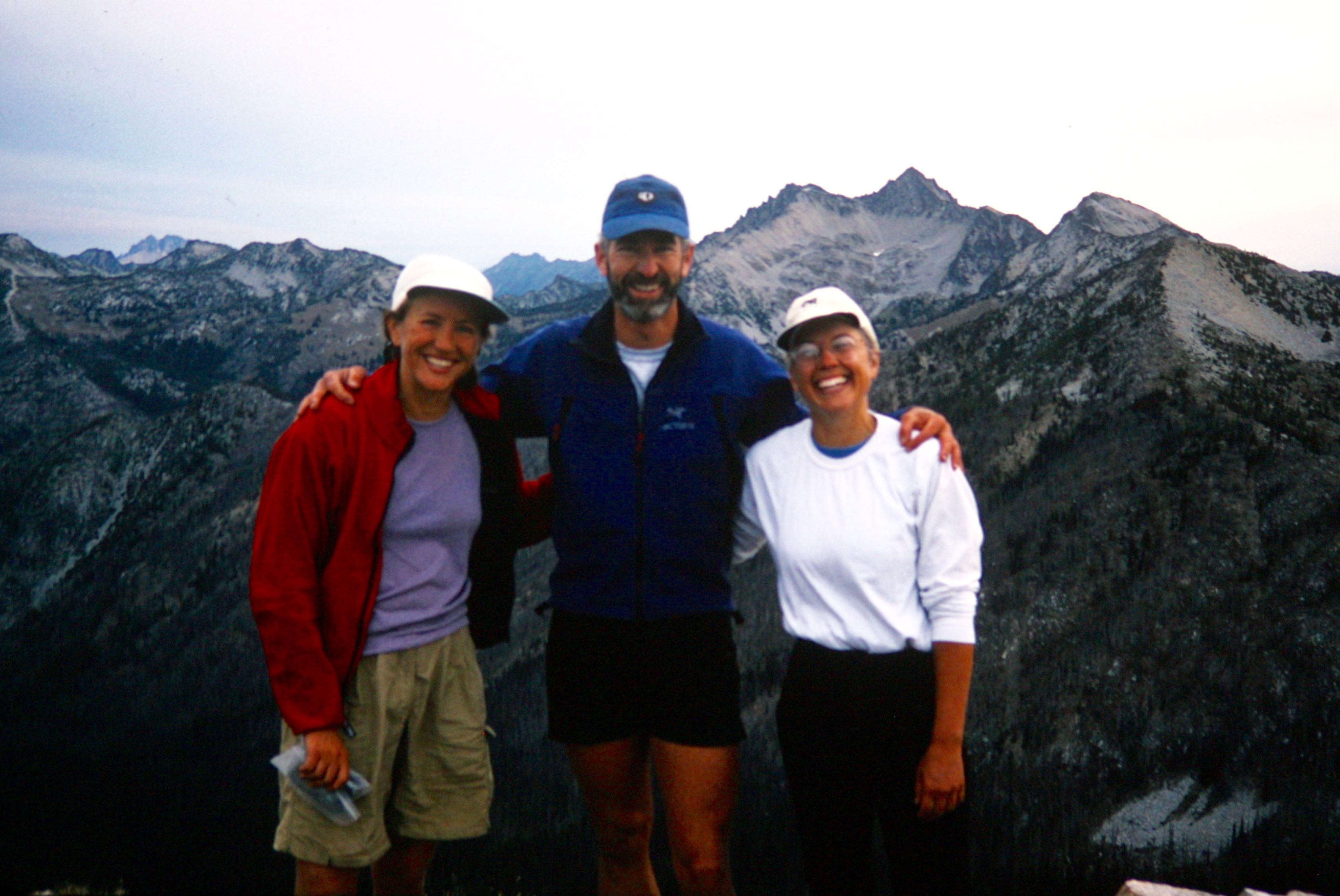 Laura and Donna prudently opted to take advantage of the lightweight rope that we had packed with us, so we completed the climb with running belays. We topped out in early afternoon (5.1 hours from camp). Hazy skies prevented long-range viewing, but we enjoyed more than an hour of gazing from the warm summit.