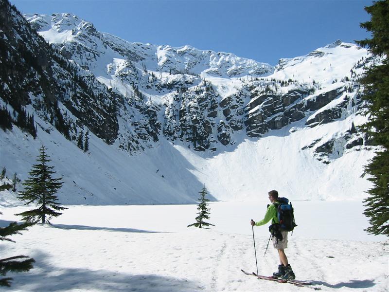 A scant 48 hours after the North Cascades Highway opened last Thursday, I pulled off the road at Rainy Pass with Jon, Megan, and Eric. We were armed with touring skis and intentions to traverse from Rainy Pass to the Early Winters Hairpin just east of Washington Pass, going by way of Rainy Lake and Copper Col. I had first completed this traverse with Laura in April 2001 as an exploratory ski trip. Because it eventually joins the route of a shorter and very popular tour called the “Birthday Traverse,” our extended version became the “Rainy–Birthday Traverse.”