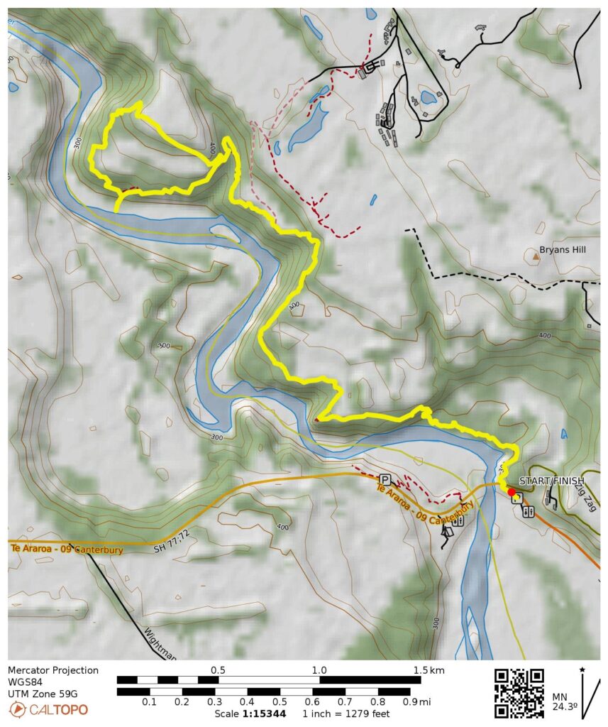 Rakaia River Gorge Overlook Loop Route Map (CalTopo)