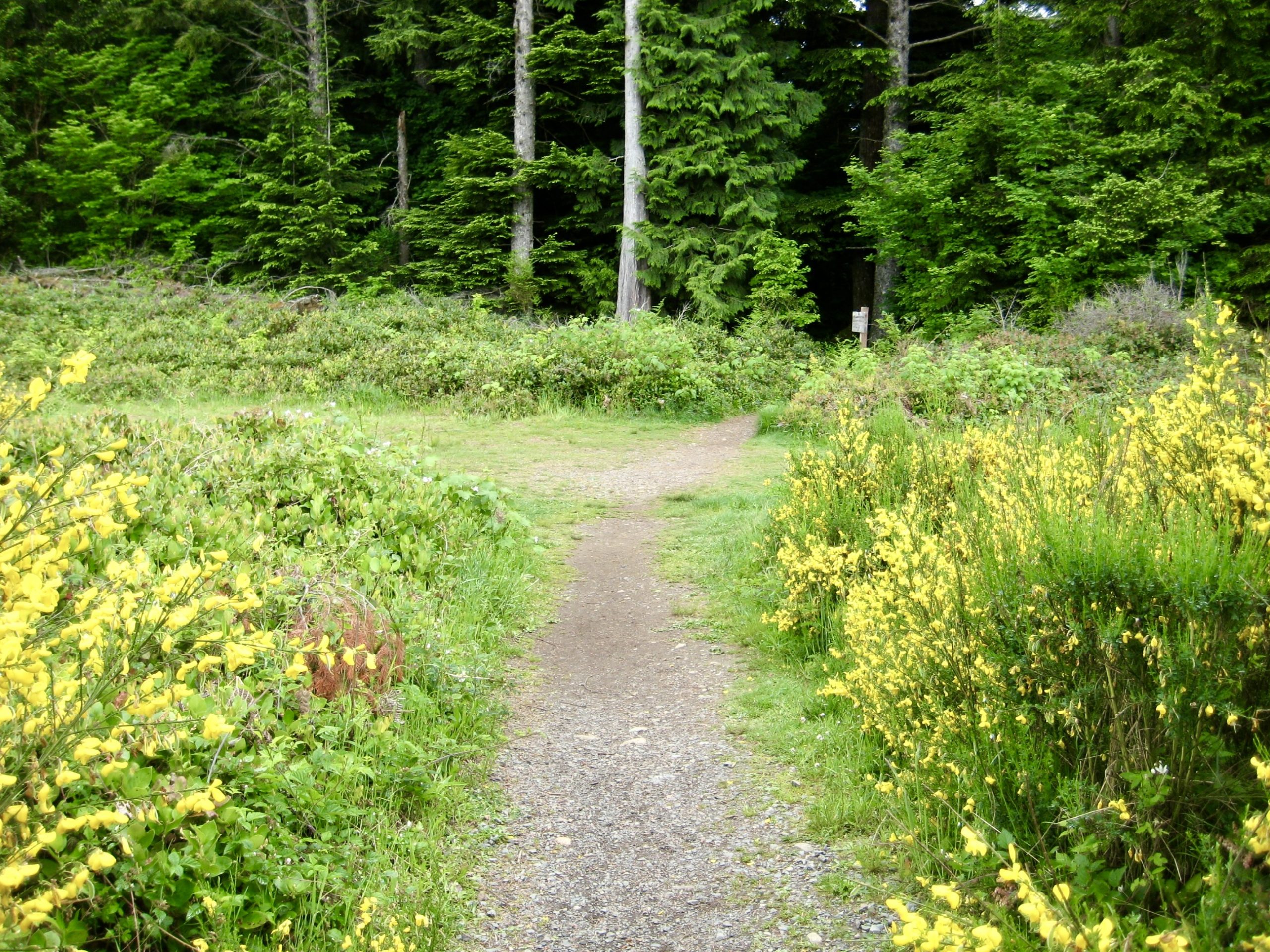 After leaving the Middle Peak, you will come to a marked junction with a short spur trail leading out to Windy Landing.  This was probably a good viewpoint in past decades, but now the view is completely obscured by young trees and bushes.