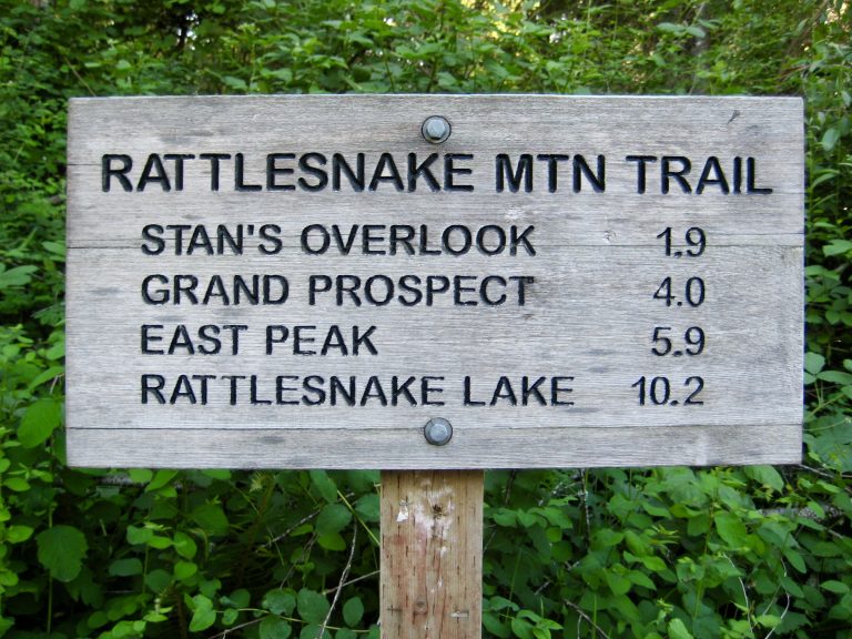 Trailhead sign at east end of Rattlesnake Mountain Trail
