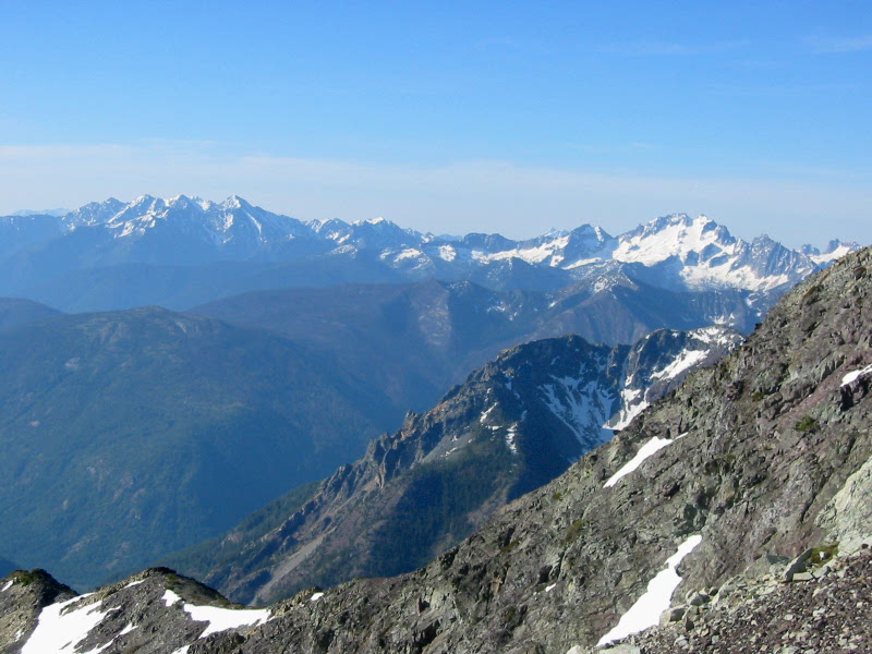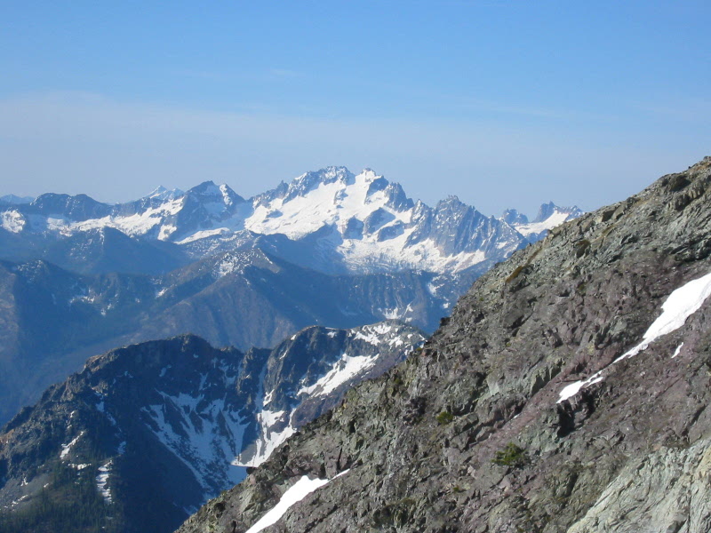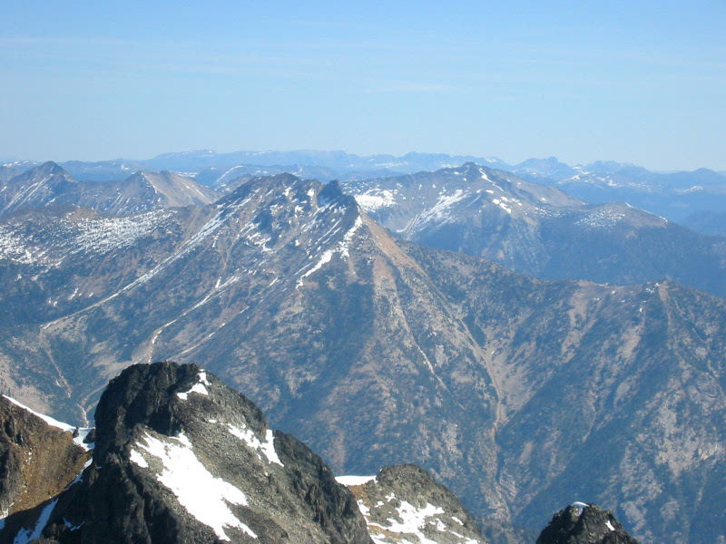 As newcomers to this part of the Pasayten, we were intrigued by the perspective it gave us of surrounding peaks. The summit register had been placed by Fay and Walter Pullen in 2002. We were the second party to sign in for 2005; the first recorded ascent of this year was only a week before. Robinson Mountain appears to get about four or five summit parties per year.