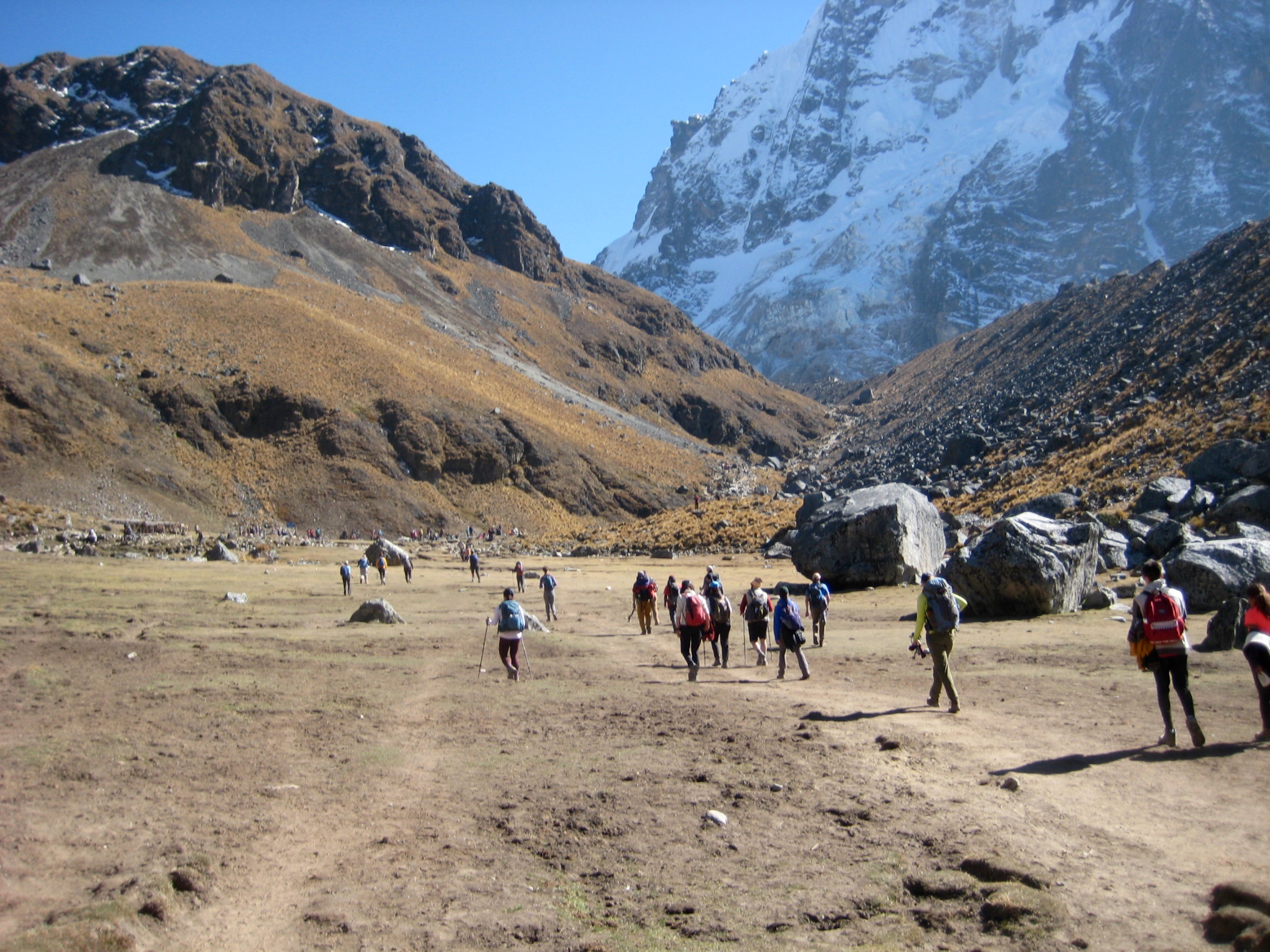 trekkers hiking thru Salkantaypampa