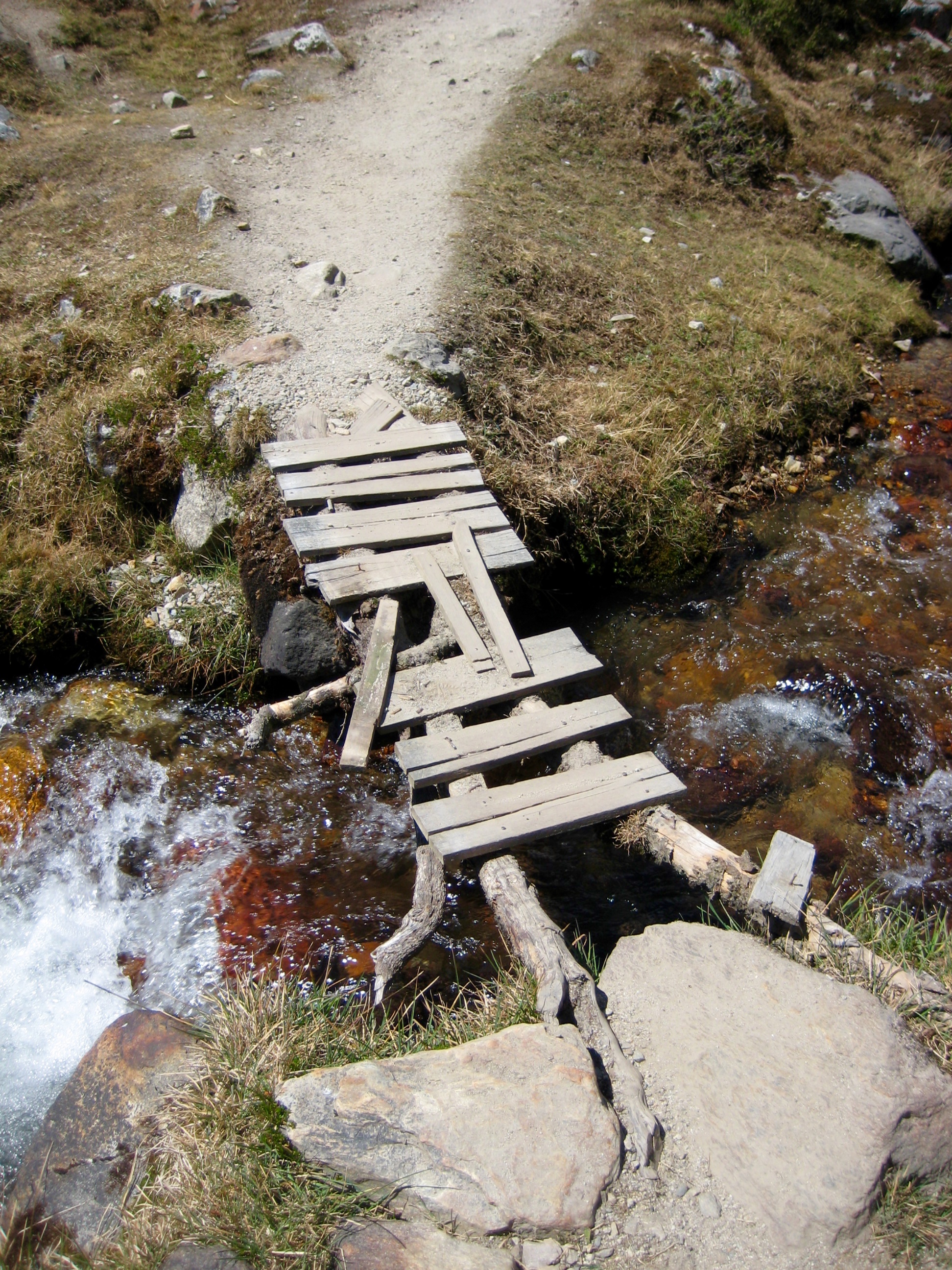 On a humorous note:  Where bridges are needed along the trail, they tend to be rather crude but effective.  These bridge builders would never be accused of frivolous over-engineering!