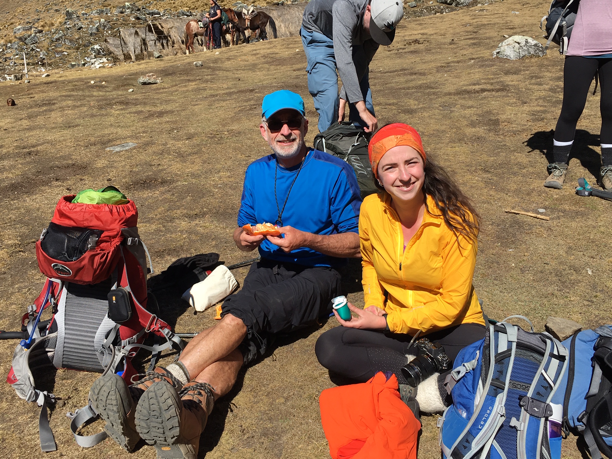 Eileen and Brooke and I started our Peruvian adventure trip with a four-day Salkantay Trek in the Cordillera Vilcabamba, about 40 miles northwest of Cusco.  This trek offered several benefits: it gave us a fun hike in a relatively user-friendly area; it provided us with a much-needed acclimation period; and it allowed us to visit world-famous Machu Picchu.  In the fashion of modern trekking, our overnight gear and food was carried by pack animals (horses, mules, and donkeys), thereby allowing us to hike with just rucksacks—something I could really get used to!