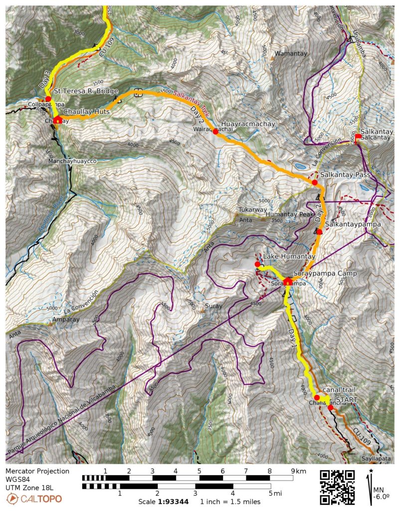 Salkantay Trek Route Map – North Part