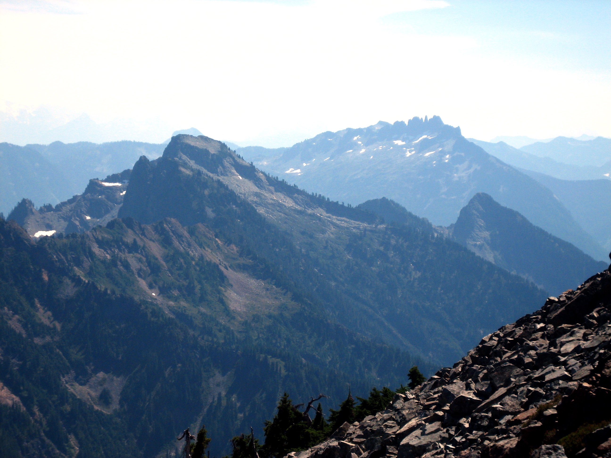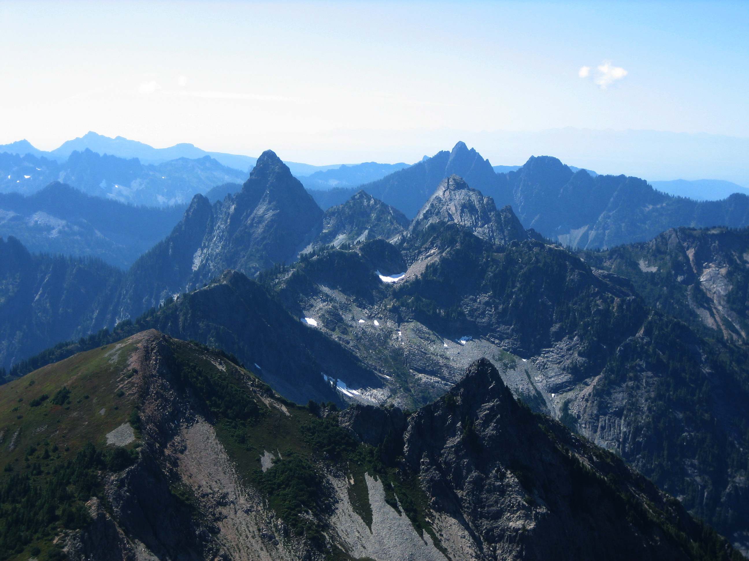The summit offers exceptionally nice views of all the Monte Cristo Mountains and Skykomish Mountains. It was a beautifully clear and warm day, which begged for a long stay.
