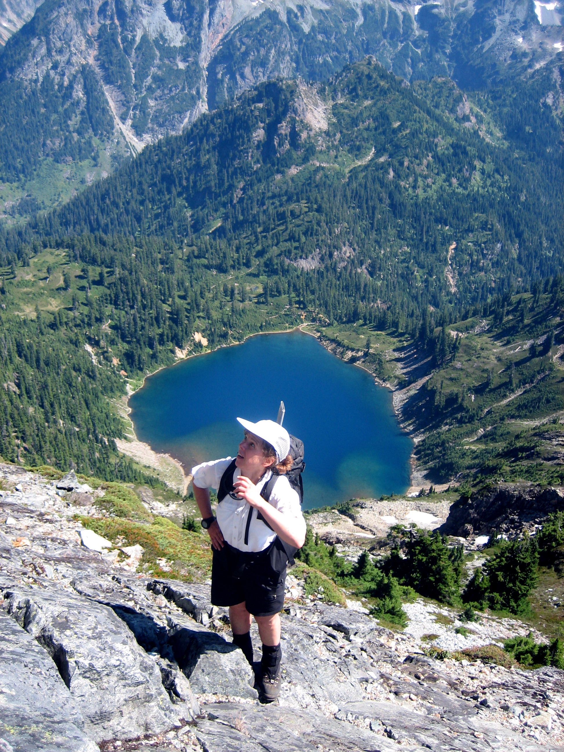 We enjoyed a quick splash in Silver Lake on the way down. Another notable highlight of the day’s climb was Suzanne’s new monochromatic climbing outfit. I think it’s a fashionably metro-retro look, but you can judge for yourselves.