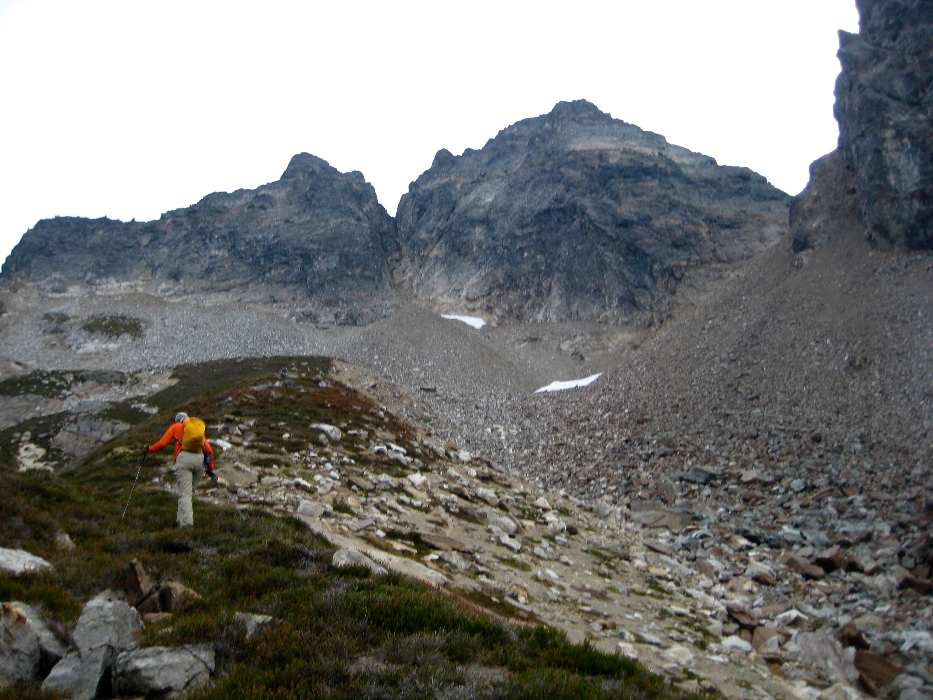 After about 2.5 miles, the trail cut across the toe of Sitting Bull Basin, and we veered off toward our objective peak.