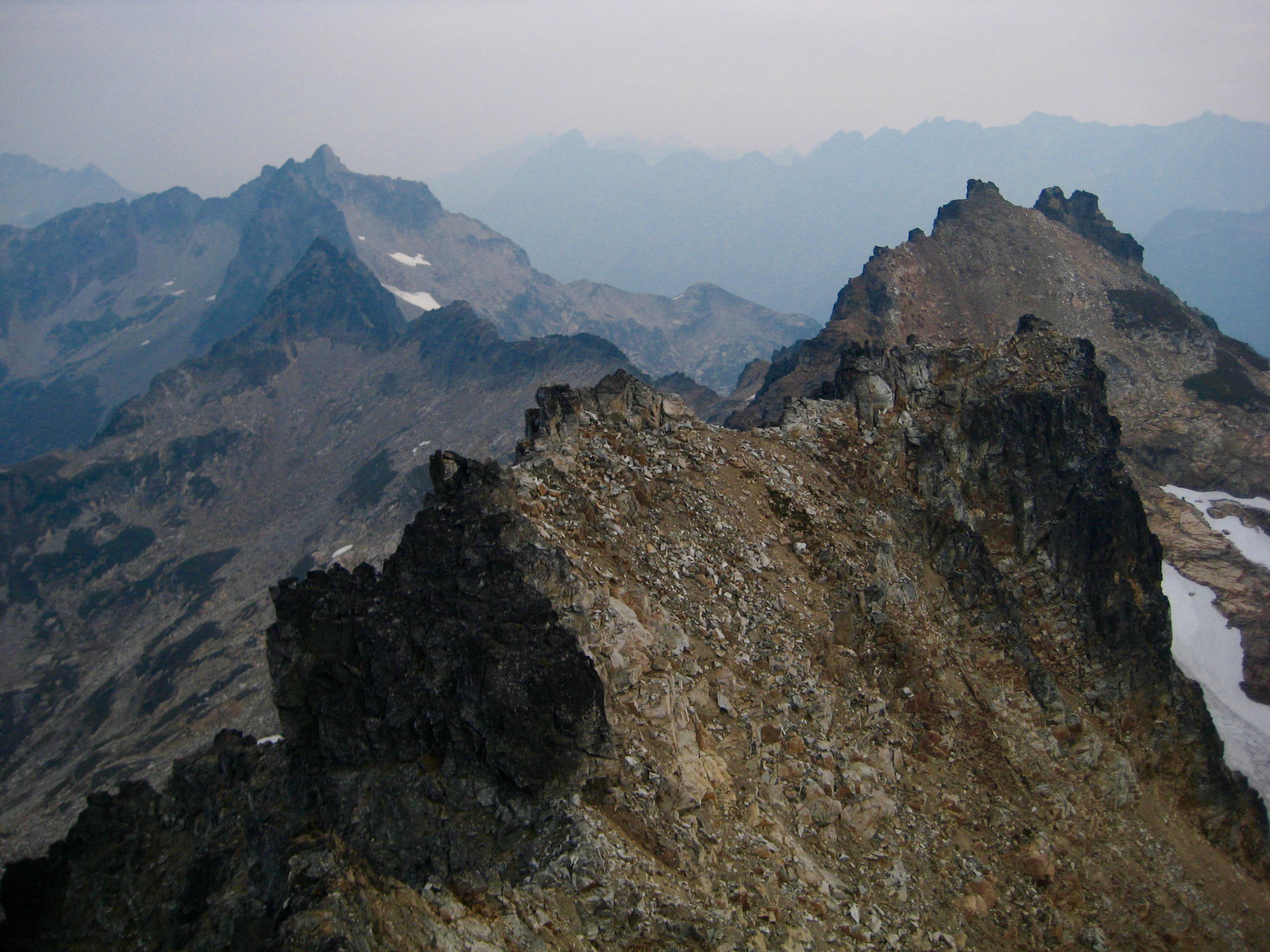 The forest-fire smoke limited our views to nearby peaks, such as Plummer Mountain to the south…