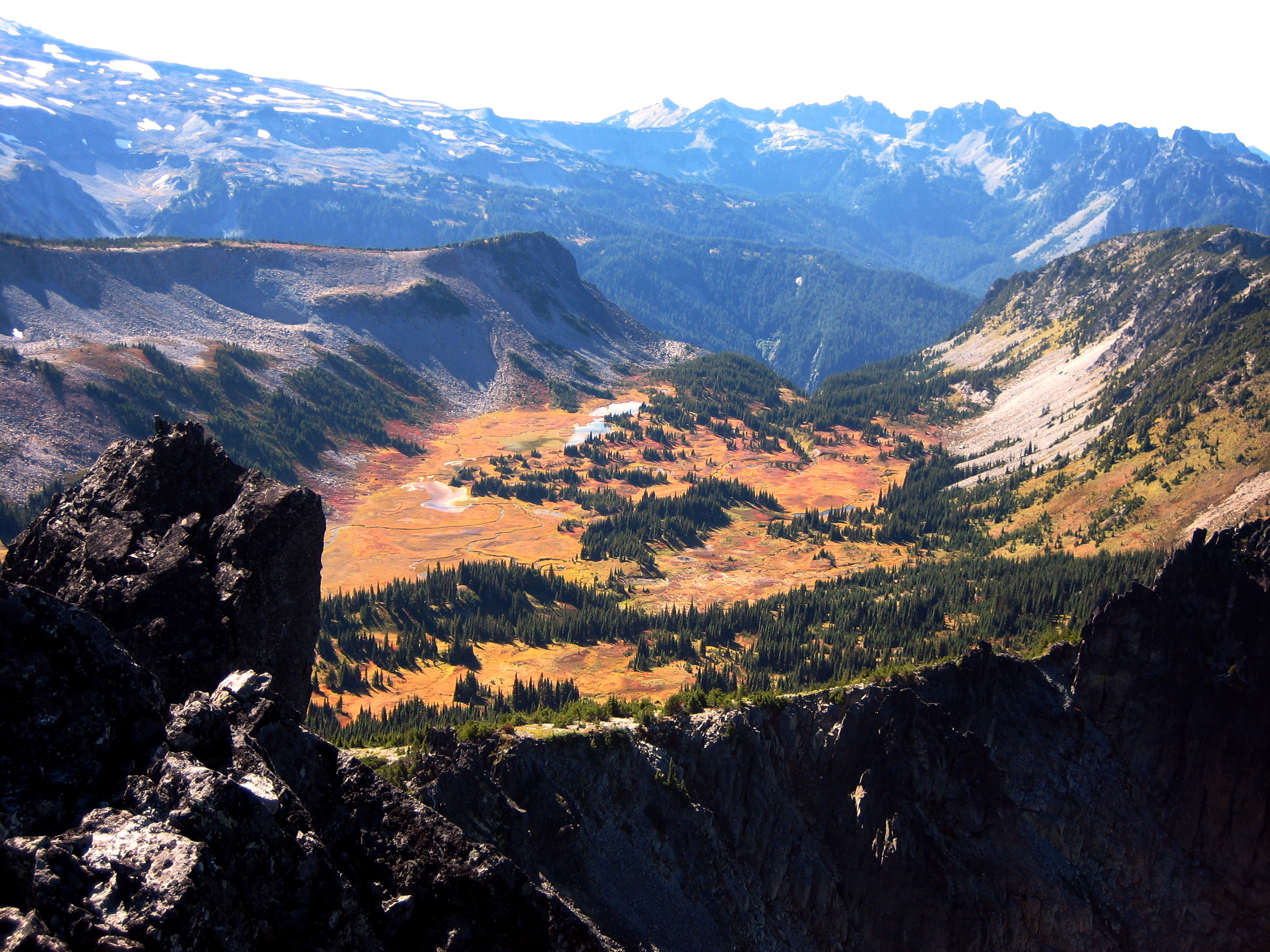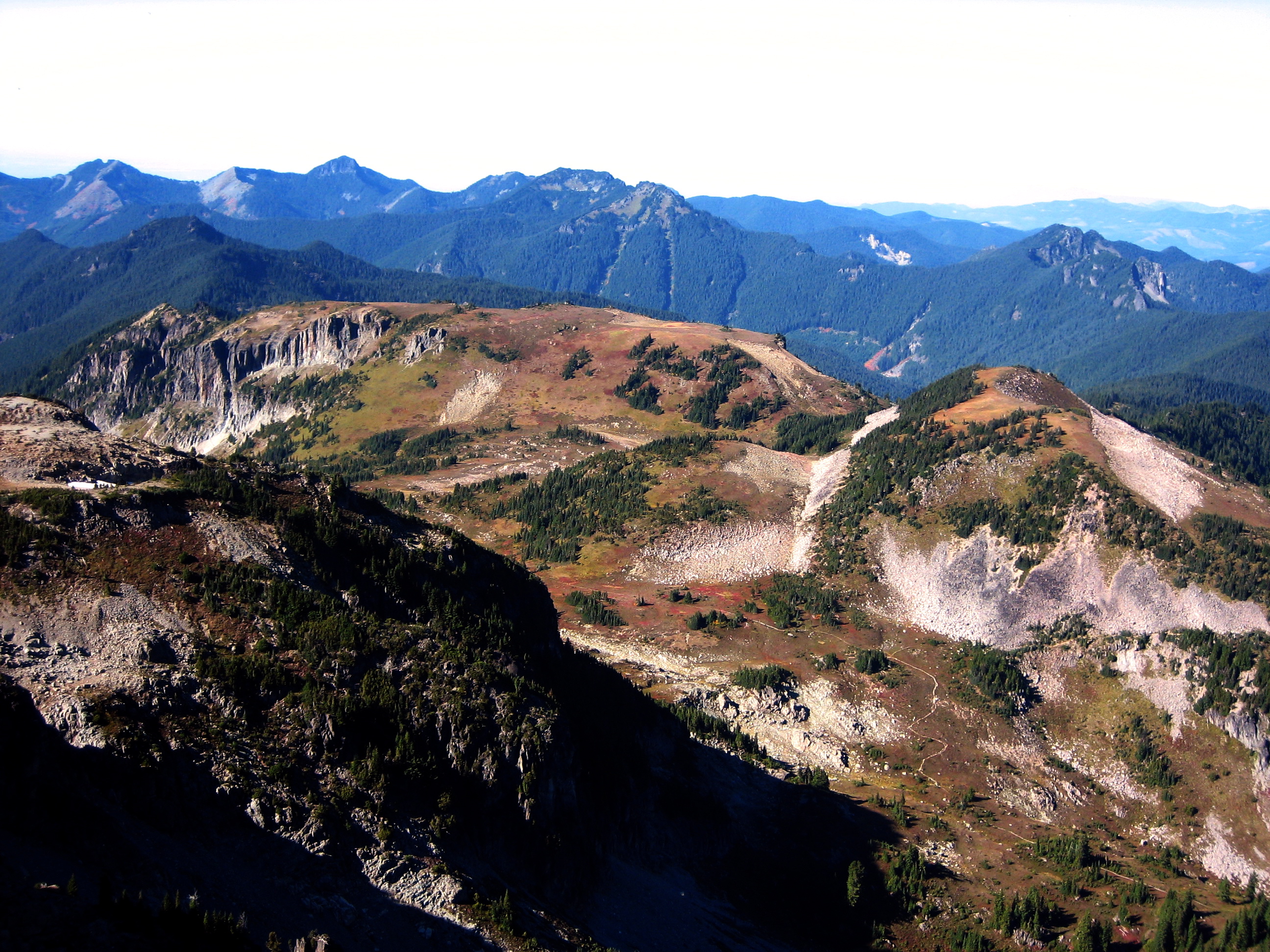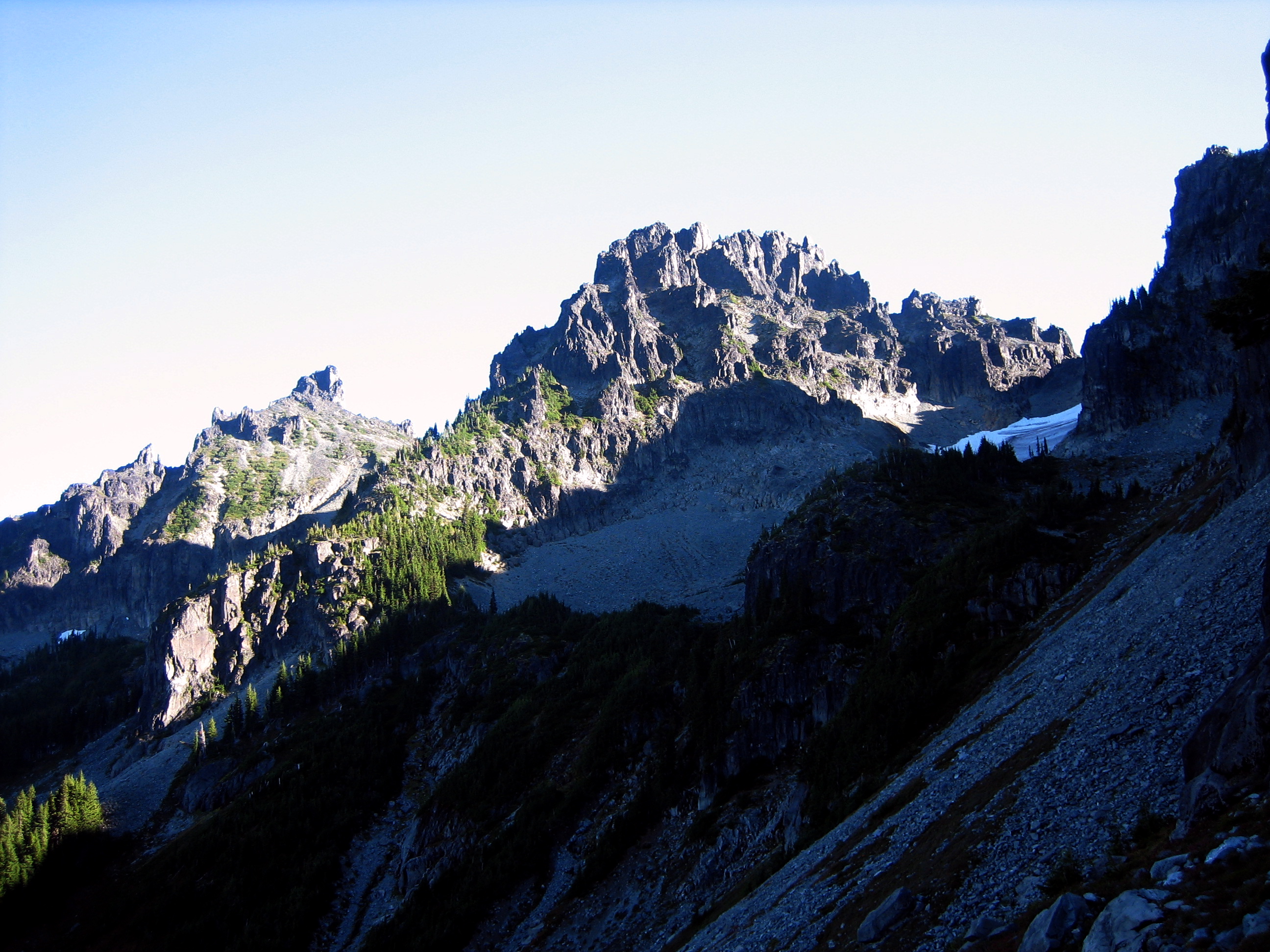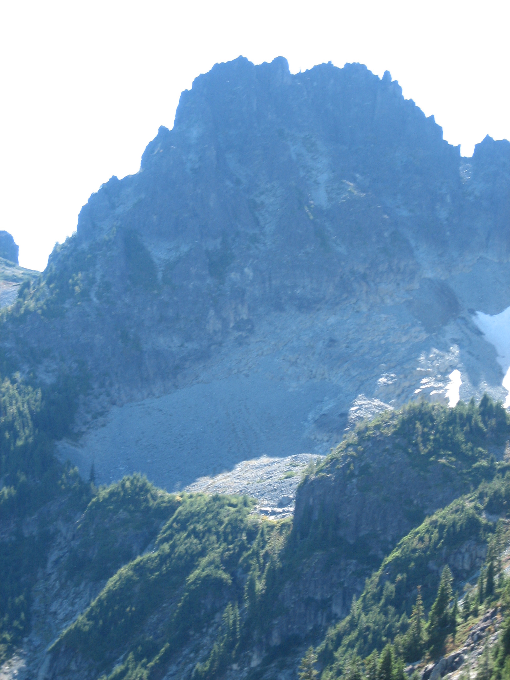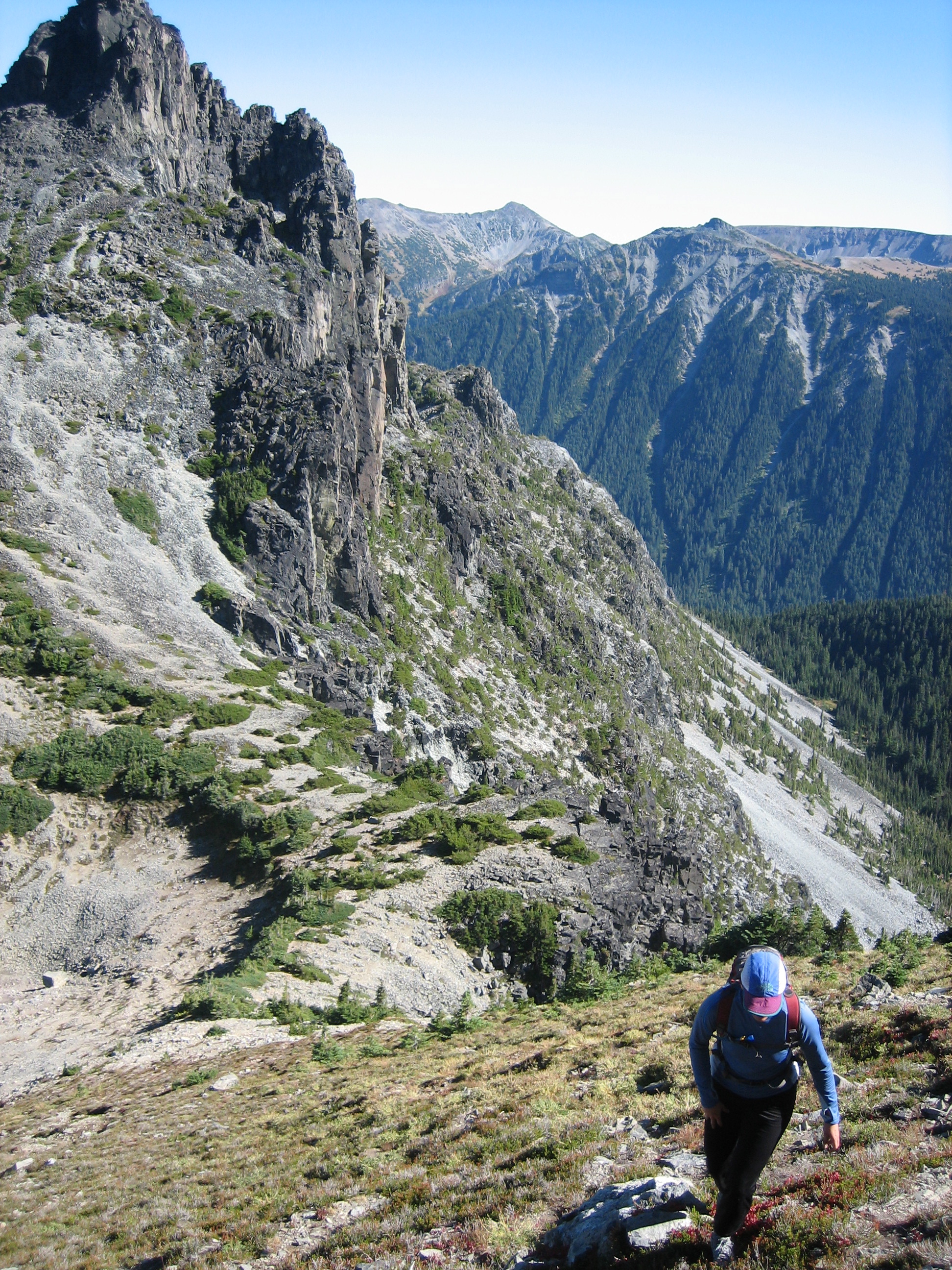 Eventually, we just dropped into Van Horn Basin and ascended heather, talus, and icky scree to Sluiskin Saddle between The Chief and The Squaw.