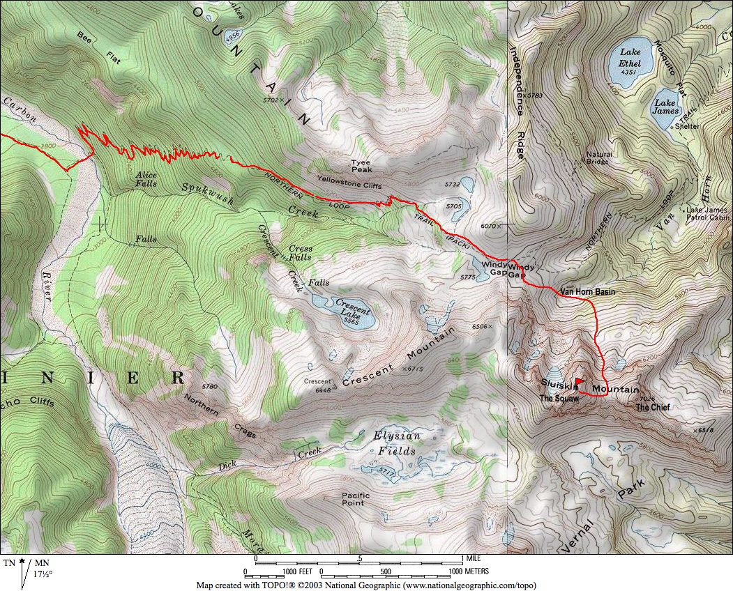 Starting & Ending Point: Carbon River Trailhead at Ipsut Creek Campground at end of Carbon River Road (Elev. 2350 feet)