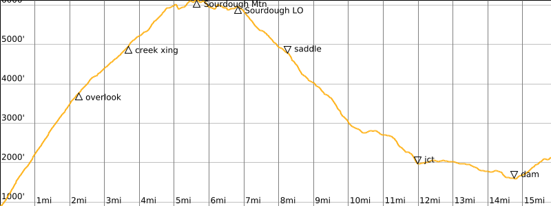Starting Point: Sourdough Mountain Trailhead at Diablo Townsite on Diablo Road (Elev. 1200 feet)