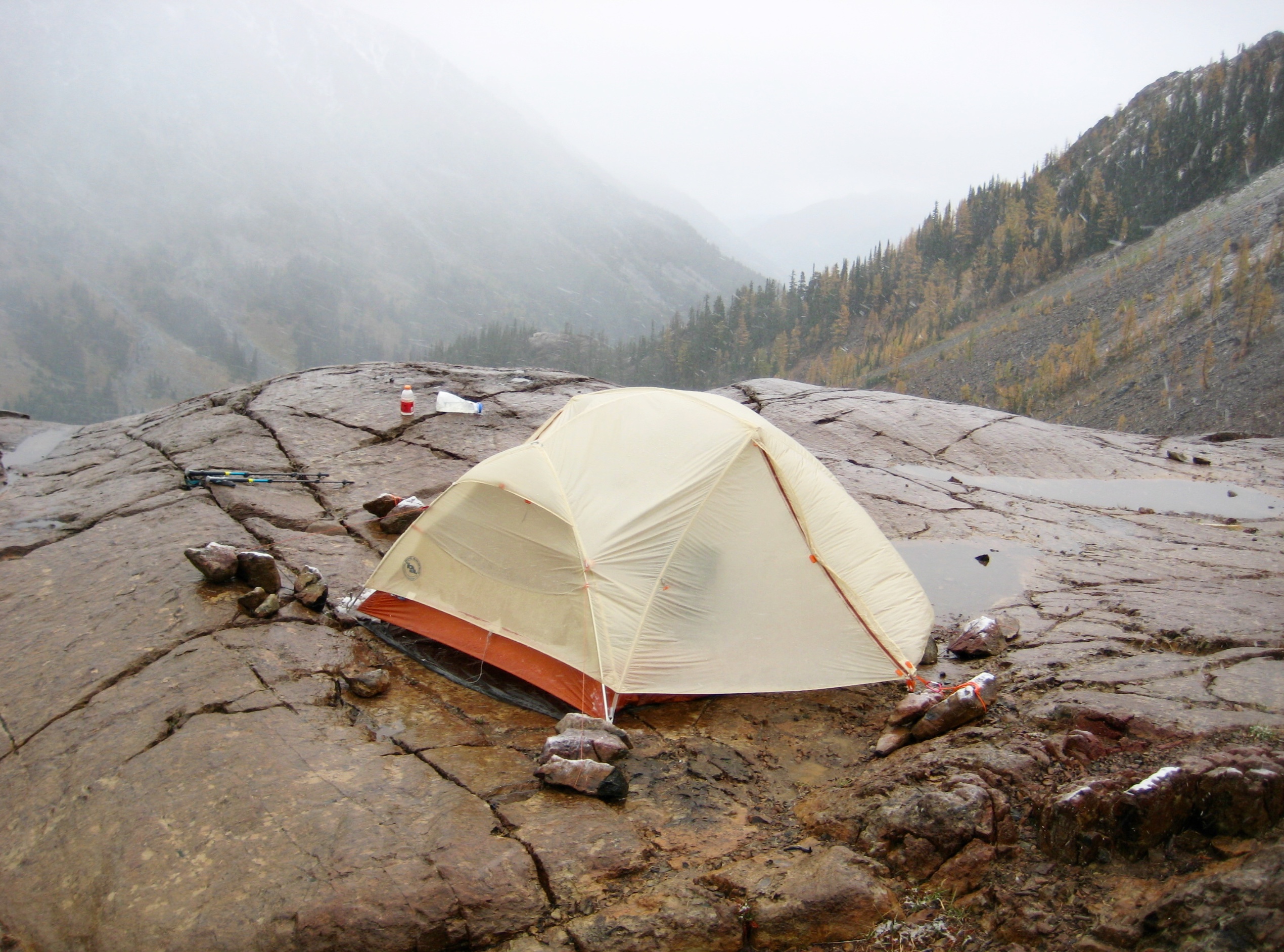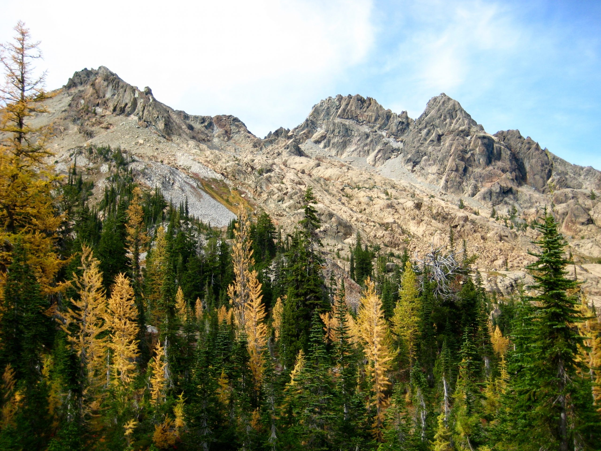 I try to do a Frozen Larch Outing every year in mid-October, but it doesn’t always happen. Sometimes, the weather is just too foul; other times, there is a general lack of interest. This year, Brooke was so eager to experience the quasi-annual and semi-rational adventure, it didn’t really matter that we had a storm looming in our forecast. As it turned out, she got a full meal deal.