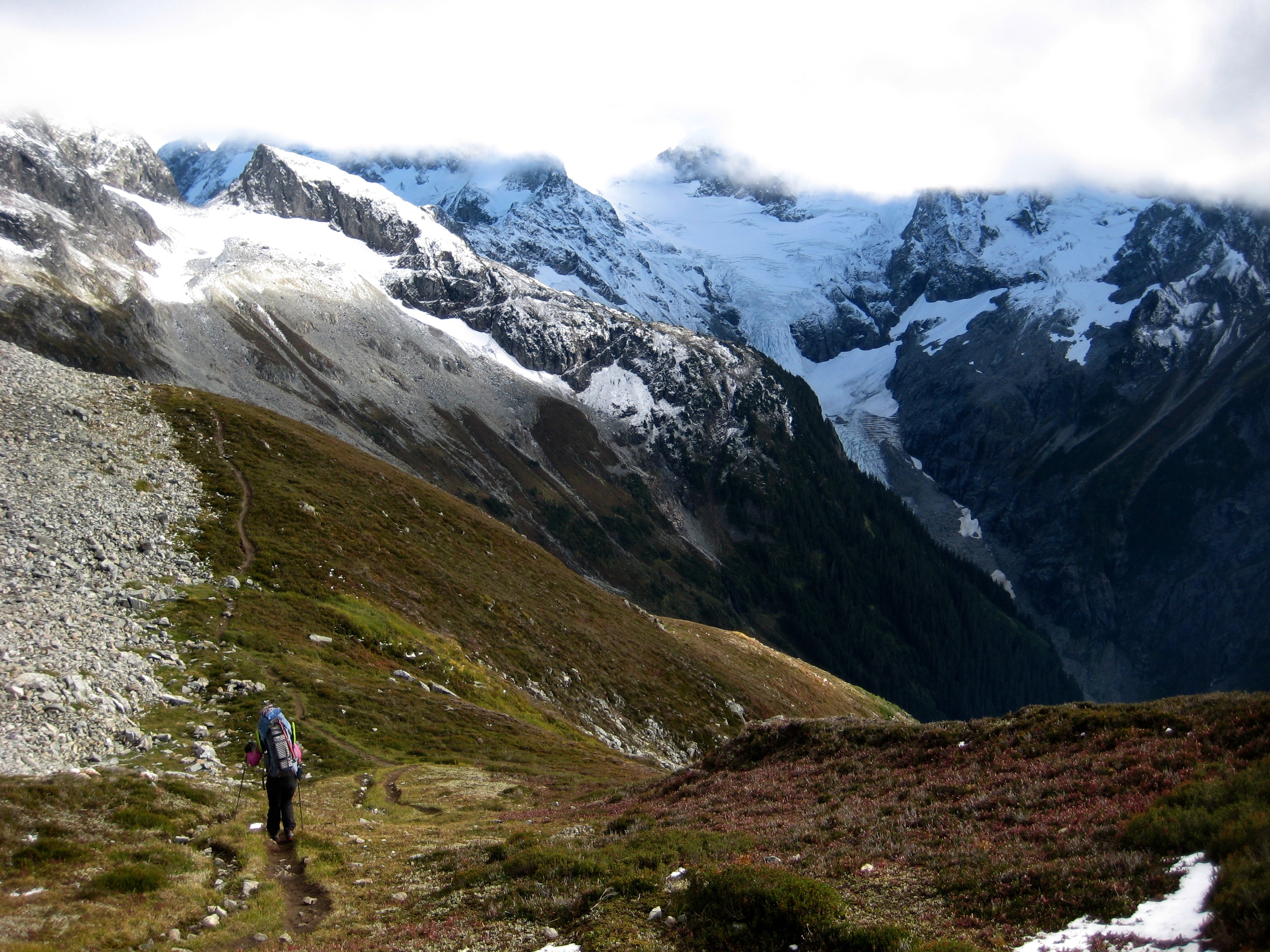 Our afternoon was spent hiking down to Cascade Pass and on down to the trailhead, which we reached shortly before 5:30pm (7.9 hours + 1200 feet from camp).  The air was unseasonably cold, and it felt as though another snow storm was coming.