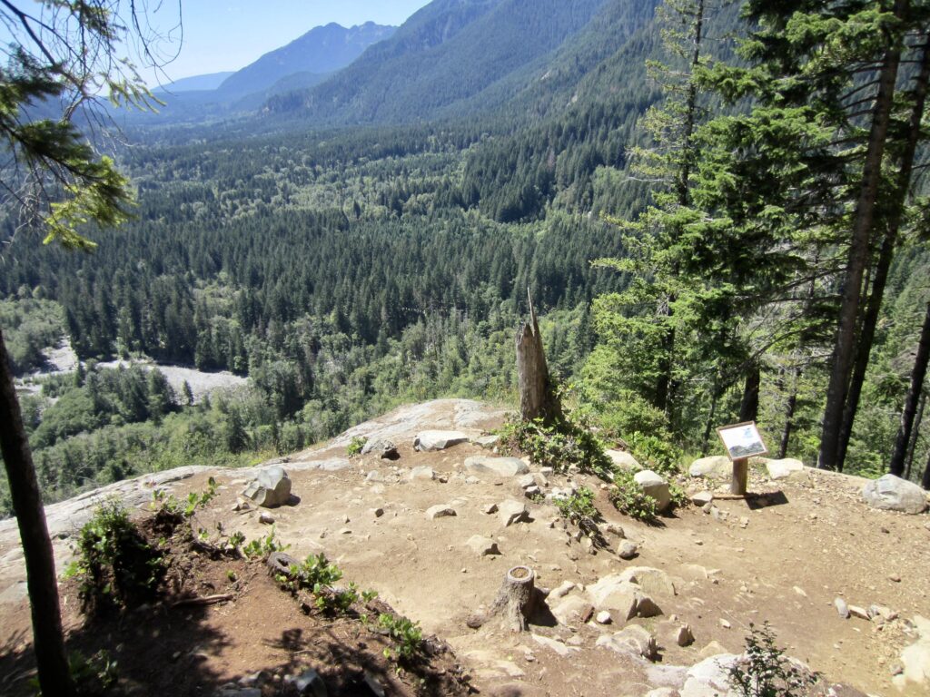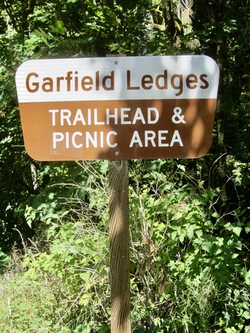 - The right fork angles steeply uphill for about 50 vertical feet, crosses over a hump, and then descends steeply for 200 feet to Garfield Ledge Viewpoint.