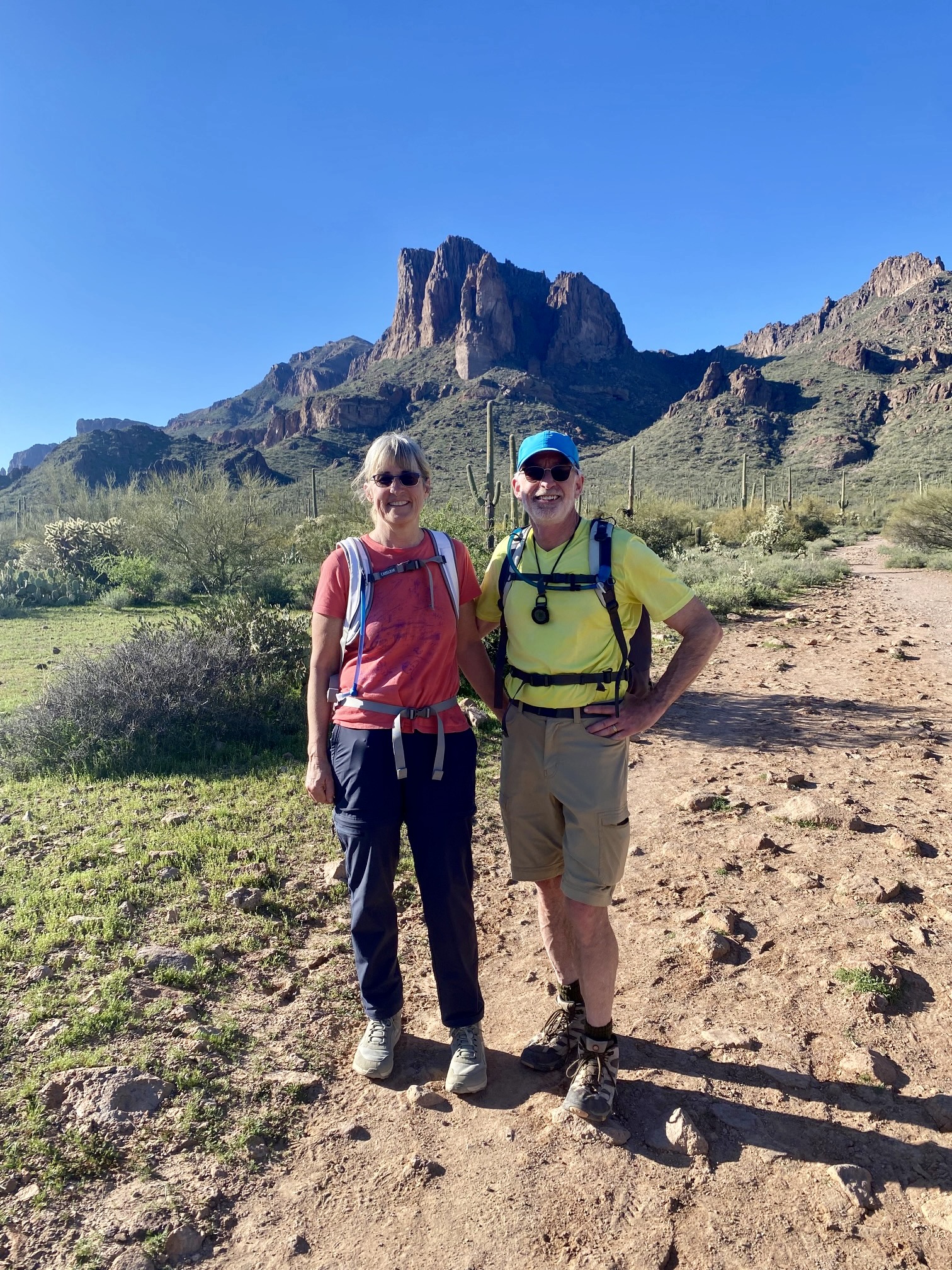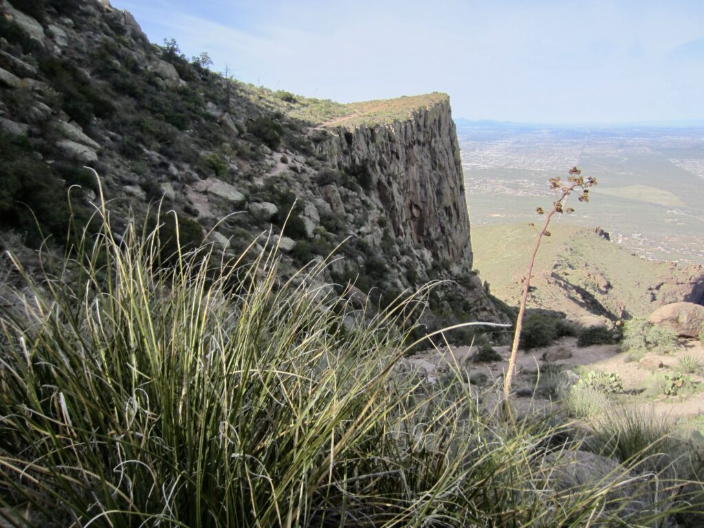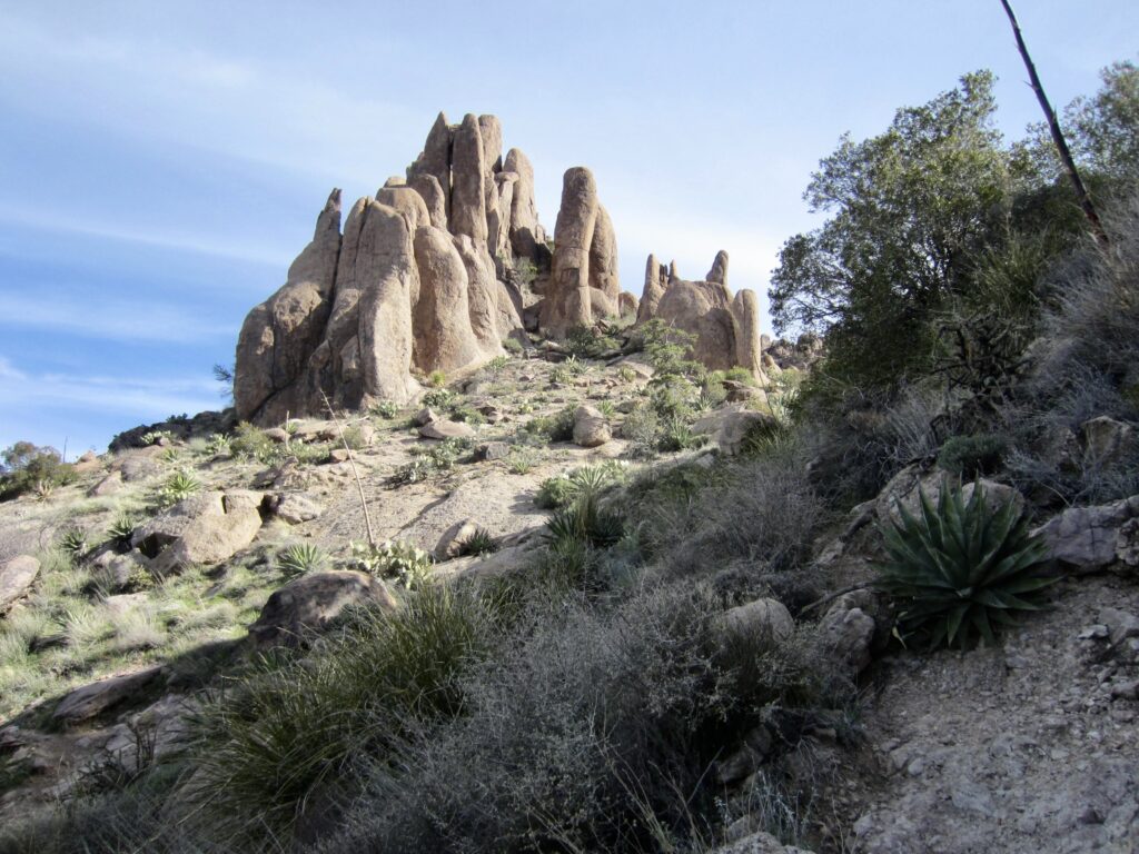The dauntingly steep and deeply creviced ramparts of the Superstition Mountains rose up directly in front of me. Various geomorphic features, including The Praying Hands, Thumb Rock, and—most famous of all—The Flatiron, were visible from the trail.