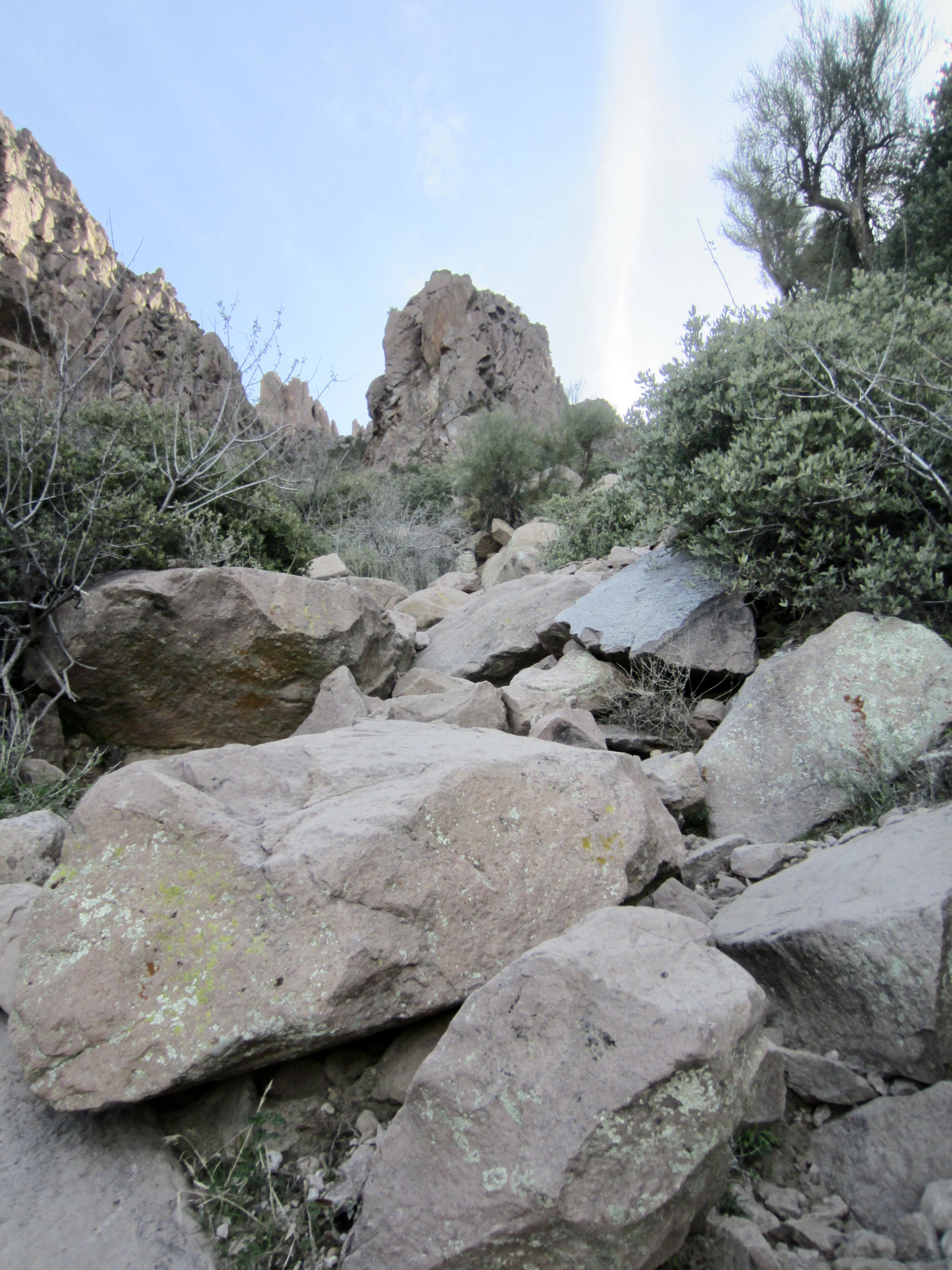 Fee paid, Eileen drove off to Carney Springs Trailhead while I began hiking through the campground. I passed the Siphon Draw Trailhead 20 minutes later and headed up the wide, rocky trail. The air was pleasantly cool on this shady side of the mountains.