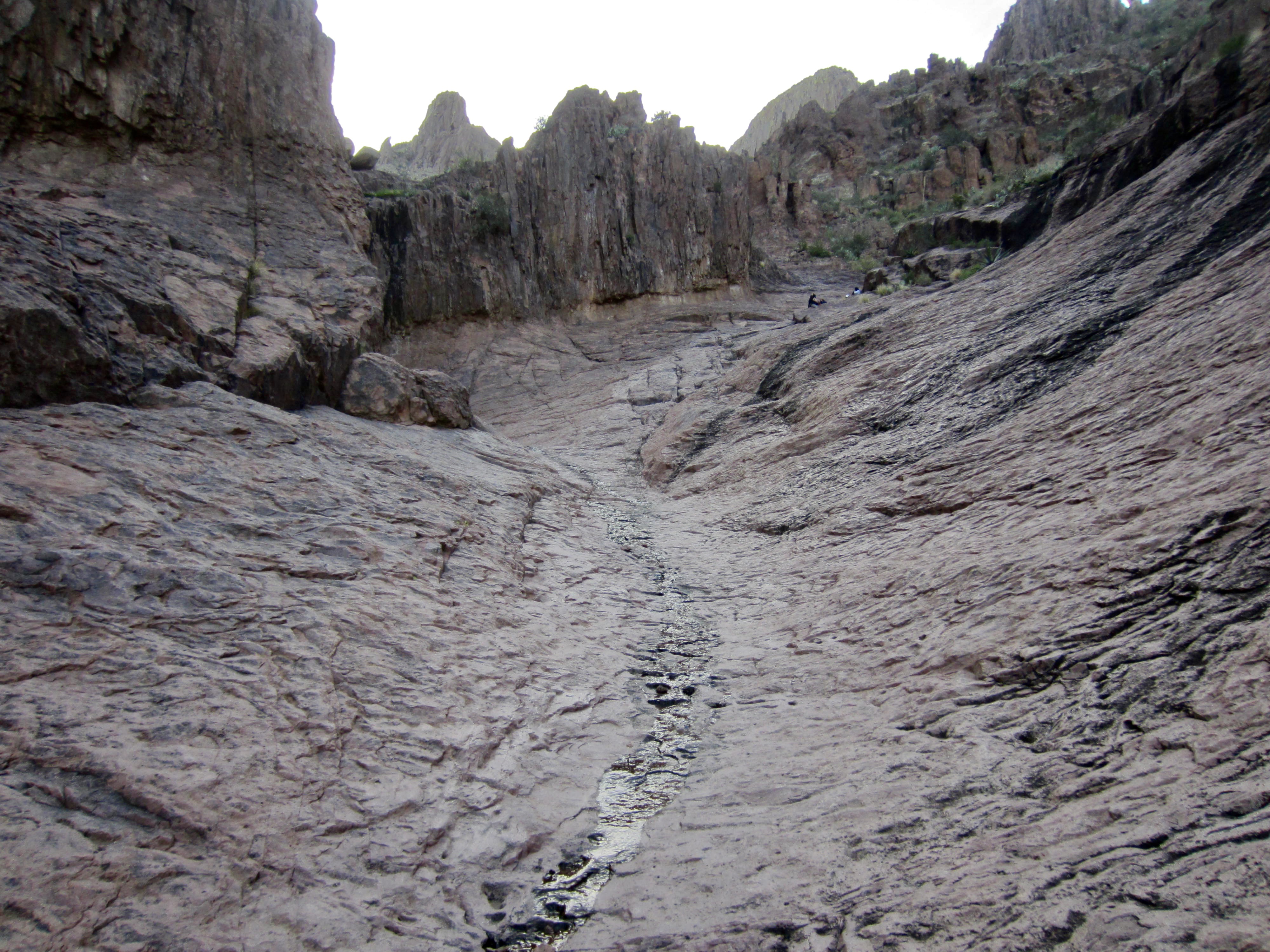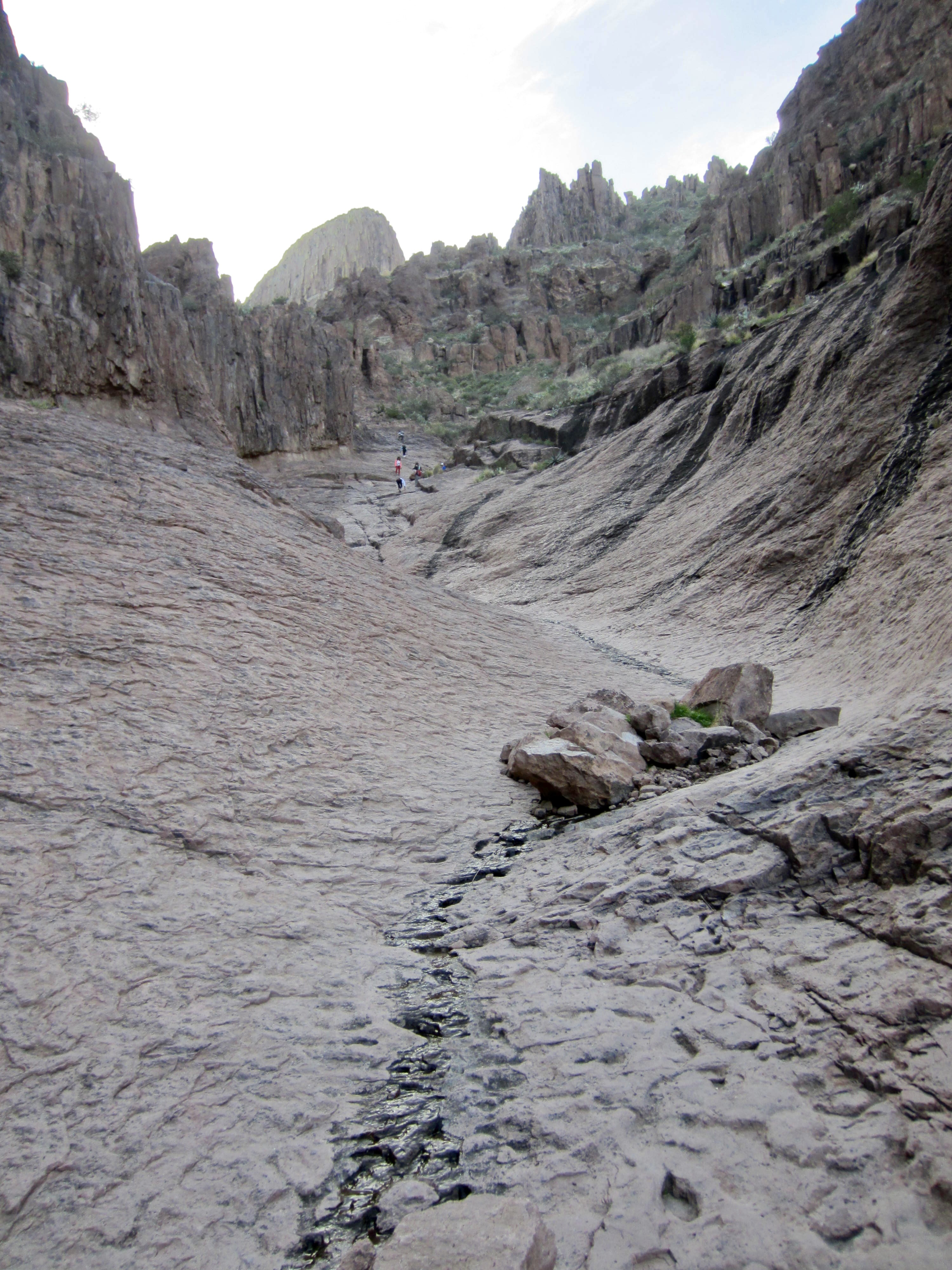 Within an hour, I entered Siphon Draw and its remarkable U-shaped basin, which has been carved into solid bedrock by millions of years of water erosion. I soon overtook a group of six young women who, judging by their jovial chatter and laughter, were having more fun than anyone else in the Superstition Mountains today. I believe that I was closely behind them on the enjoyment scale.
