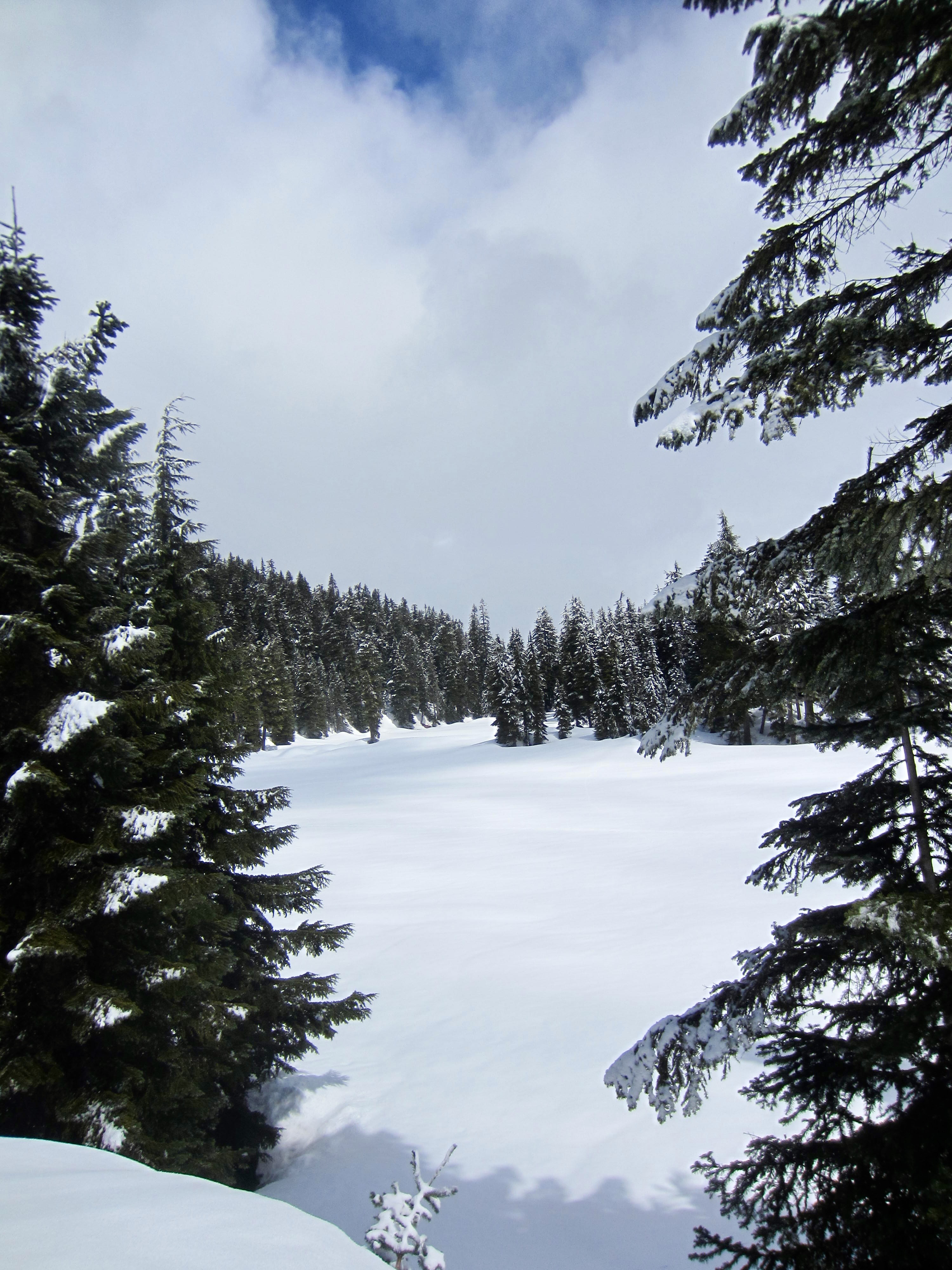By skirting the right-hand edge of the large clearing, you will come upon Hyak Lake, which really just looks like an even-larger clearing. You are now slightly more than halfway to Surveyors Hill, so this is a good chance to assess your progress.