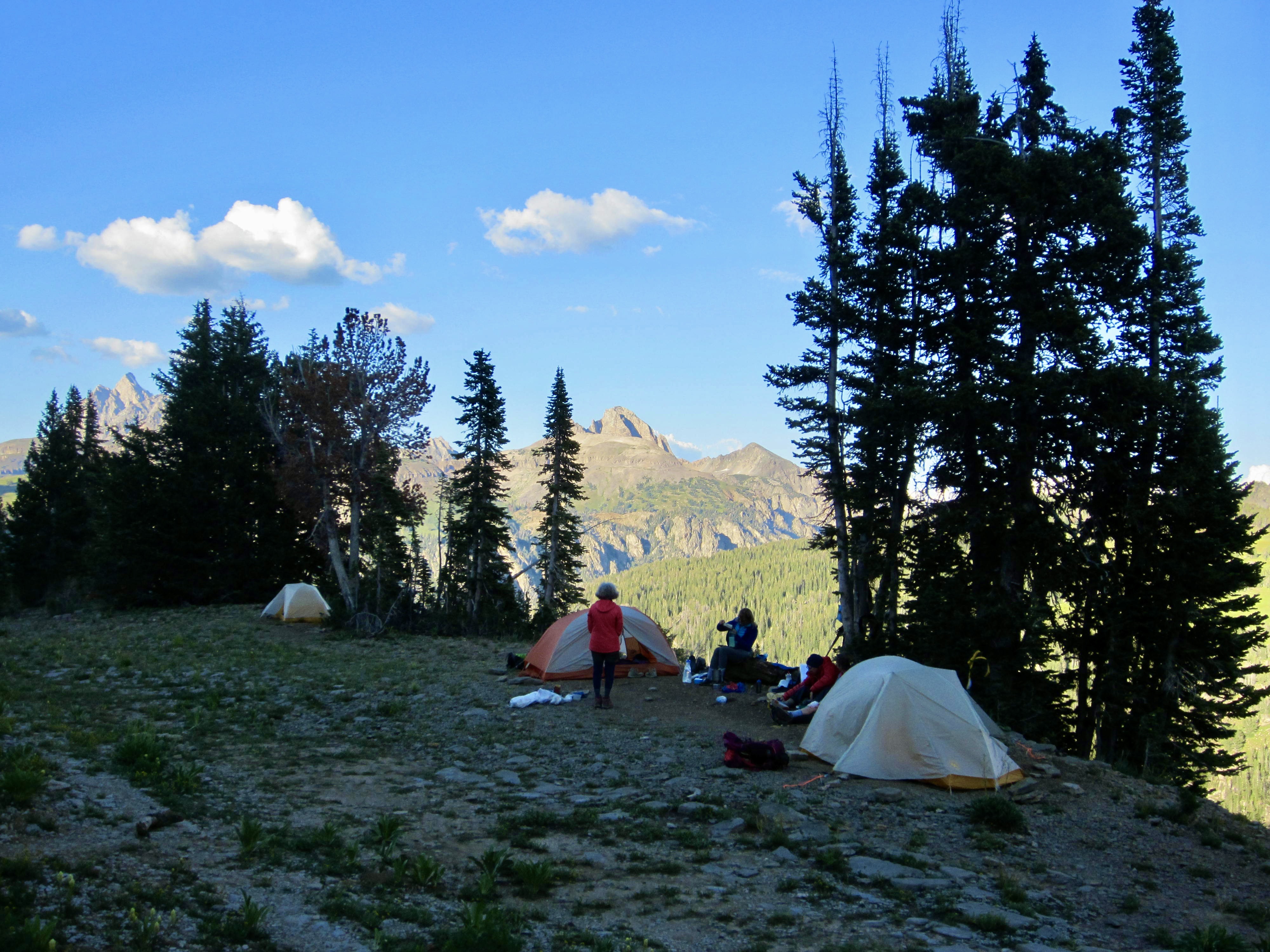 Upon returning to Paintbrush Divide, we reconnected with Kevin and Maria, then descended to Upper Paintbrush Meadow. Some searching around the meadow revealed a fine campsite atop a small rock knob for our last night (9.2 hours + 7.2 miles + 2650 feet – 1450 feet from Camp 2).