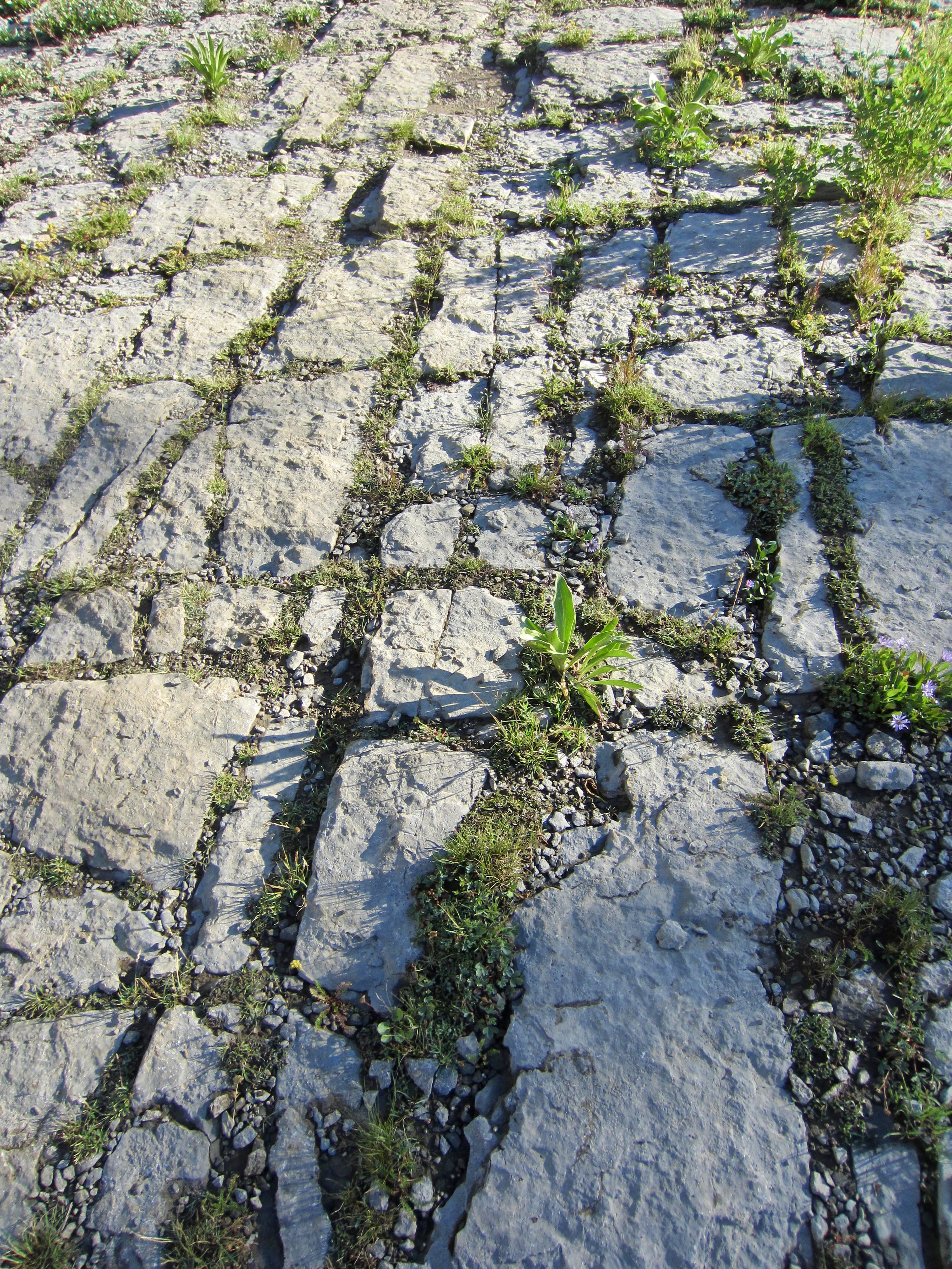 The shelf consists of an erosion-resistant limestone layer that projects outward 100 to 200 yards from a weaker cliff. In places, the tessellated limestone surface is exposed on the ground, giving the appearance of carefully placed stone pavers.