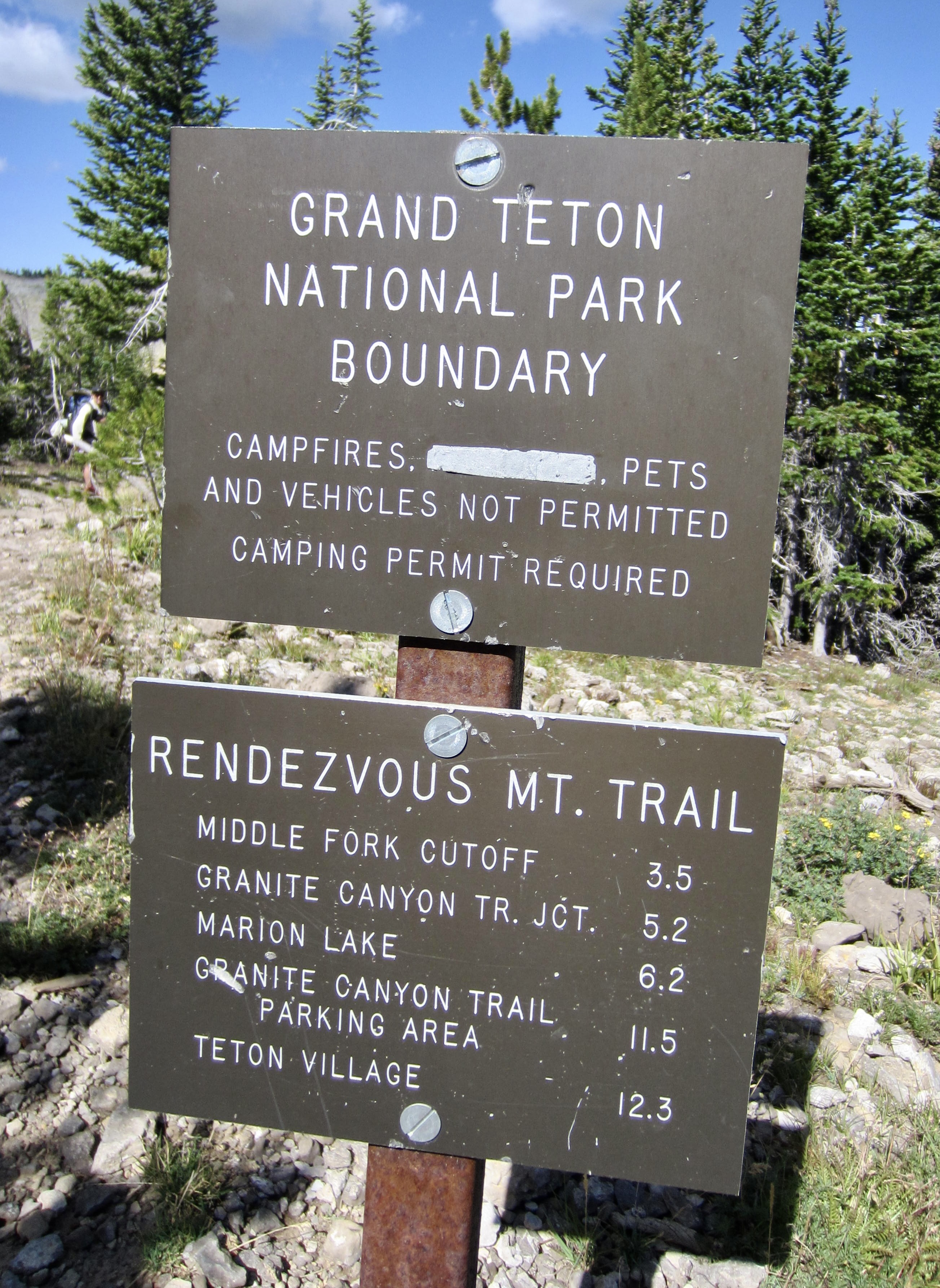 Way Points: Rendezvous Mountain crest (gondola ride);  South Fork Granite Creek & Middle Fork Granite Creek & North Fork Granite Creek & Marion Lake & Fox Creek Pass & Death Canyon Shelf & Mt. Meek Pass & Alaska Basin / South Fork Teton Creek & Sunset Lake & Hurricane Pass & South Fork Cascade Basin & South Fork Cascade Canyon & Cascade Forks & North Fork Cascade Canyon & Lake Solitude & Paintbrush Divide & Upper Paintbrush Meadow & Lower Paintbrush Meadow & Paintbrush Canyon & Leigh Lake Outlet Bridge & String Lake (trail hike)